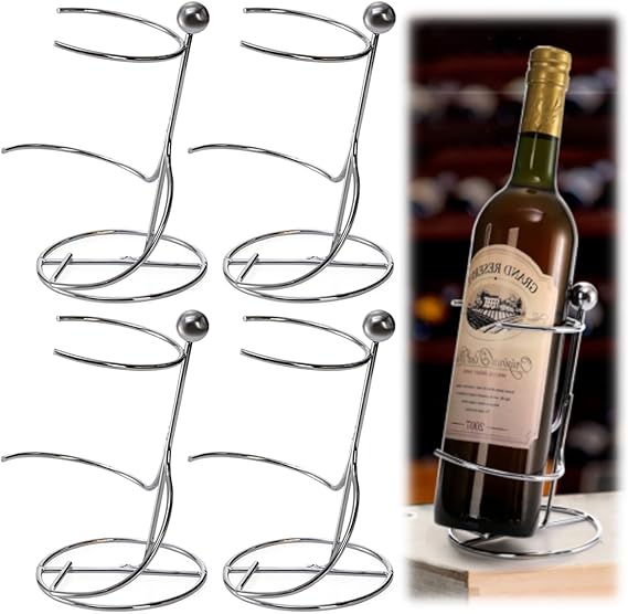 4 Packs Single Wine Rack Countertop, Silver Metal Small Wine Holder, Floating Wine Bottle Holder for Wine Bottle Storage, Cabinet, Pantry, Unique Tabletop Wine Rack as Gifts for Wine Lovers