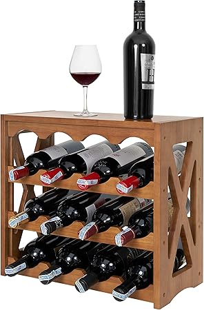 Wine Rack, Wine Rack Free Standing Floor, Wine Racks Countertop Display Rack with Table Top, Wine Bottle Holder for Kitchen Dining Room Bar (16 Bottles)