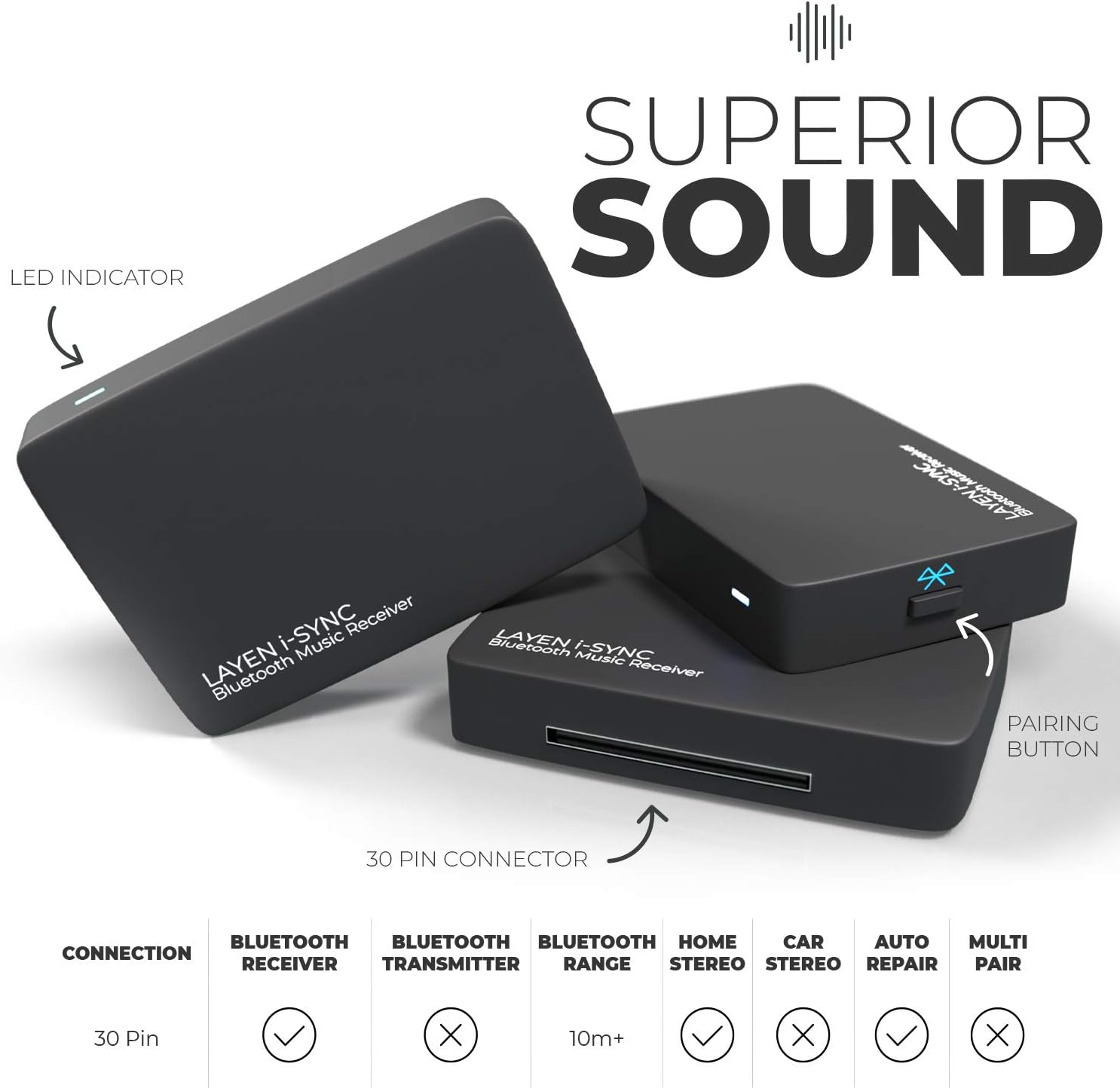 LAYEN i-SYNC 30 Pin Bluetooth Adapter Audio Receiver for Bose SoundDock and Other iPod iPhone Music Docking Stations, Hi-Fi, Stereo and Speakers (Not Suitable for Cars)