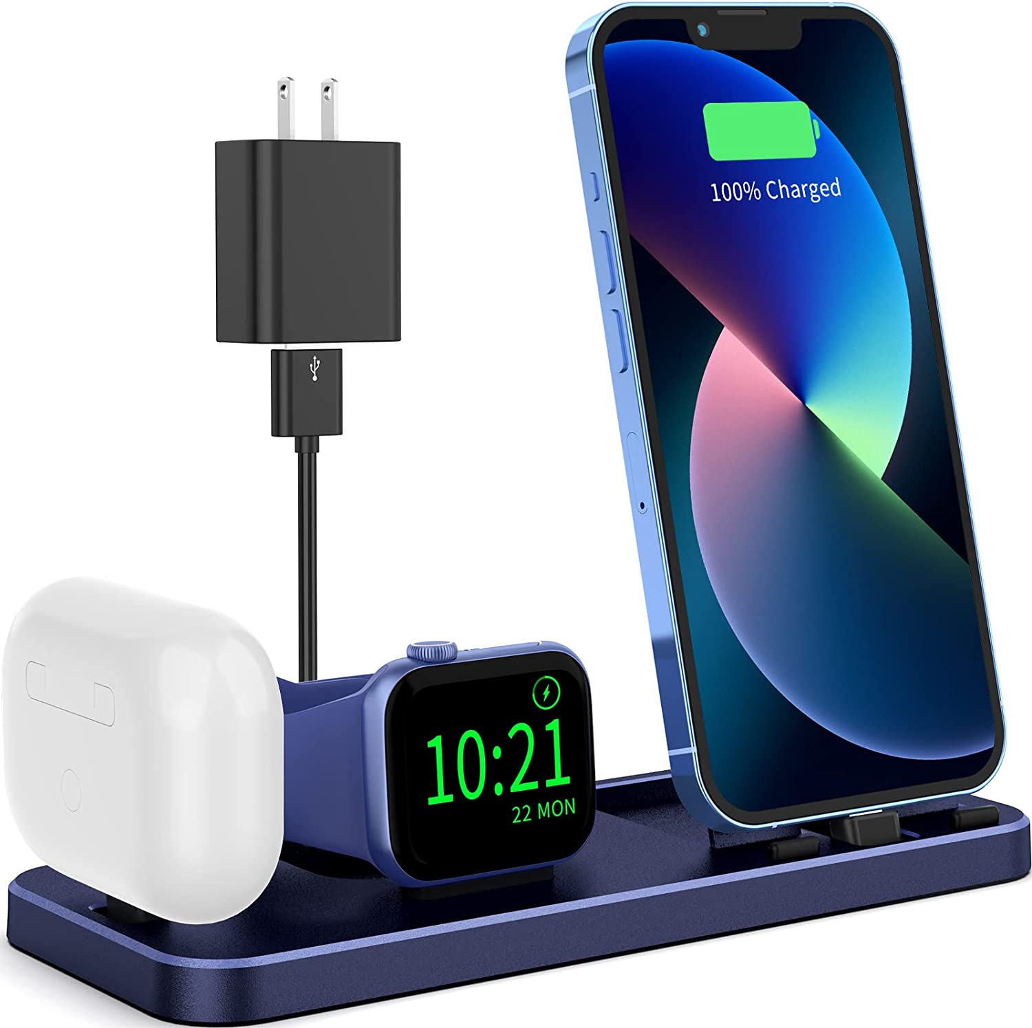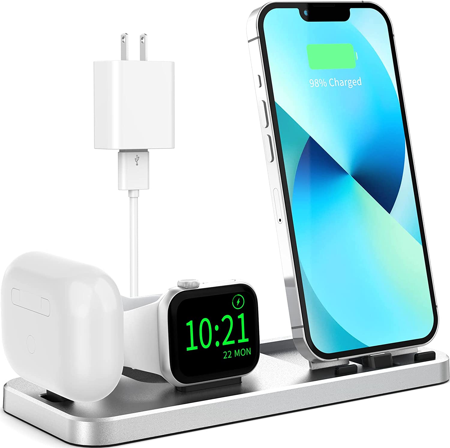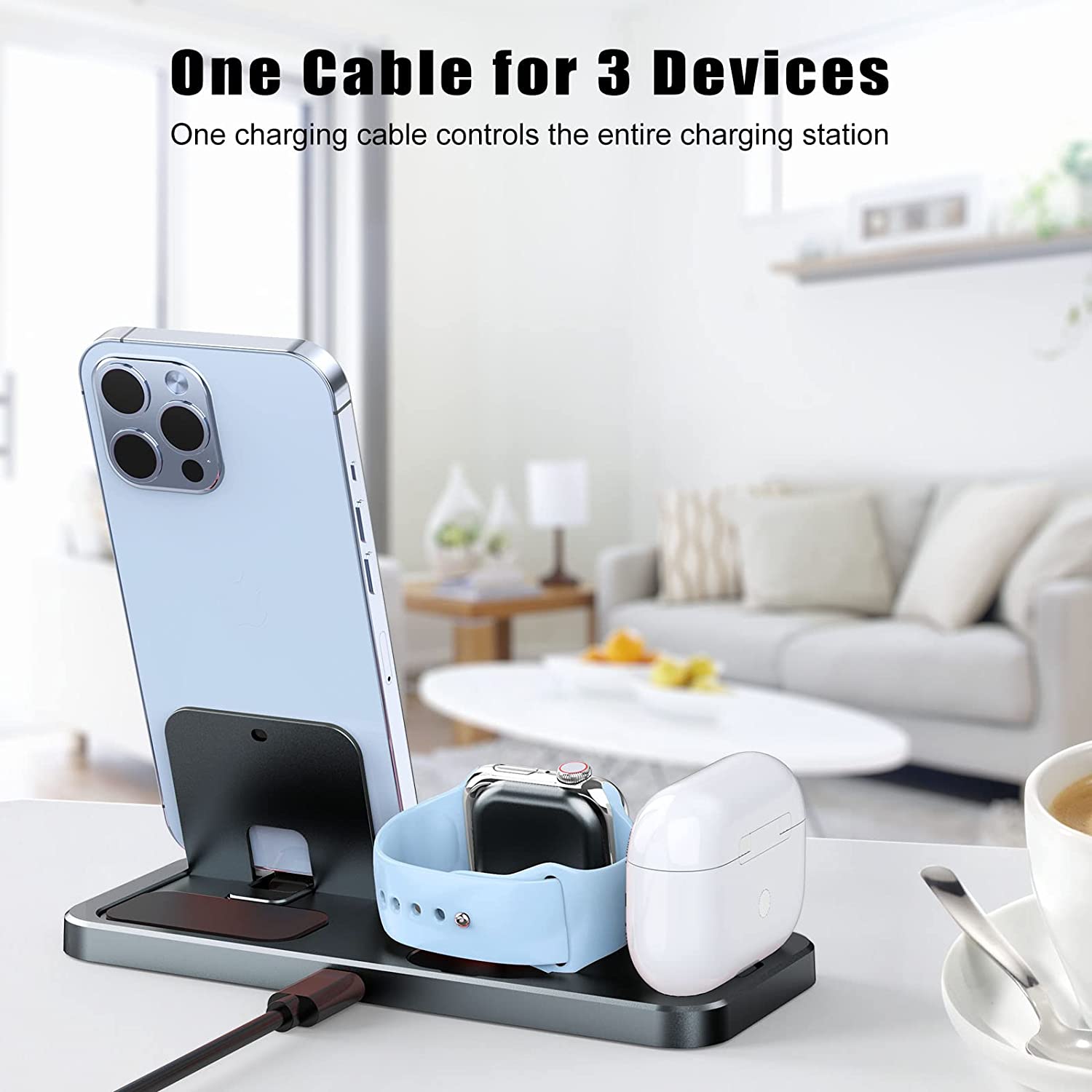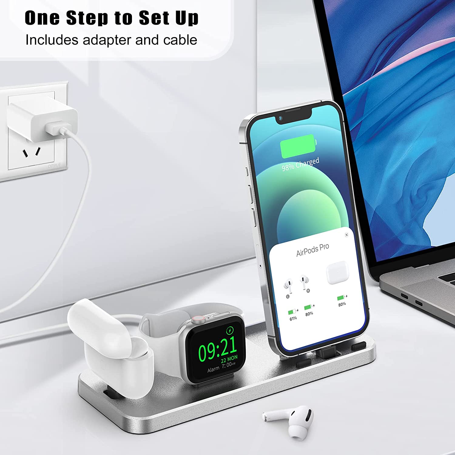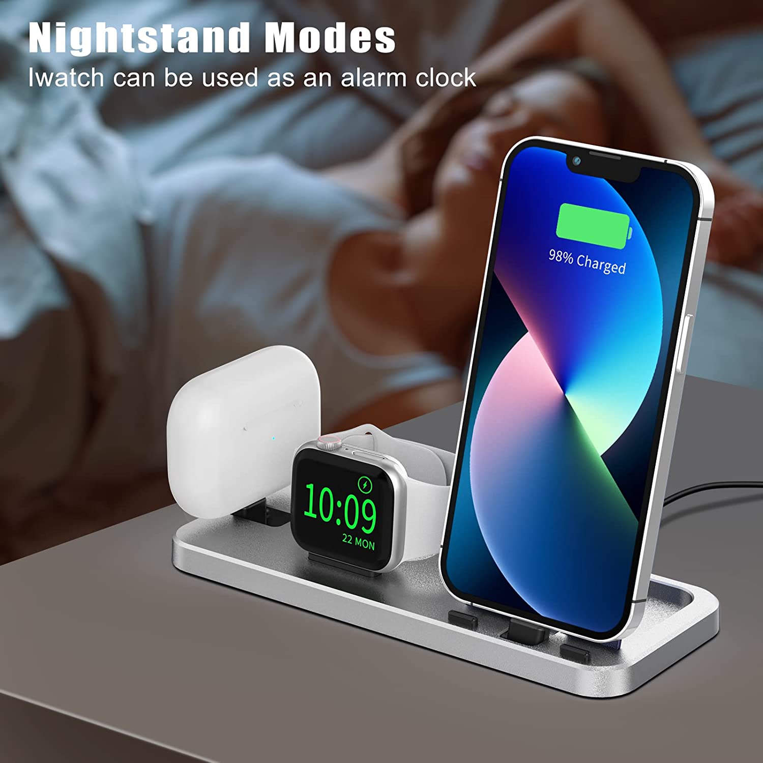 • 【Anti-slip and Magnetic】- 3 in 1 charging station for apple provides magnetic charging for iWatch. Provide built-in charger plugs for iPhone and AirPods. The bottom of the charger, the phone holder and the bottom of the iwatch are designed with non-slip silicone pads to make your device safer.