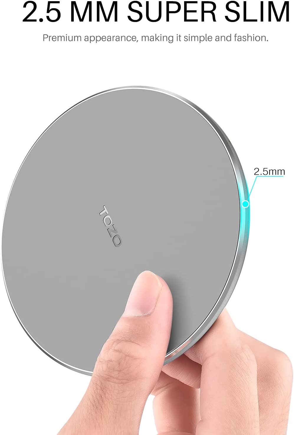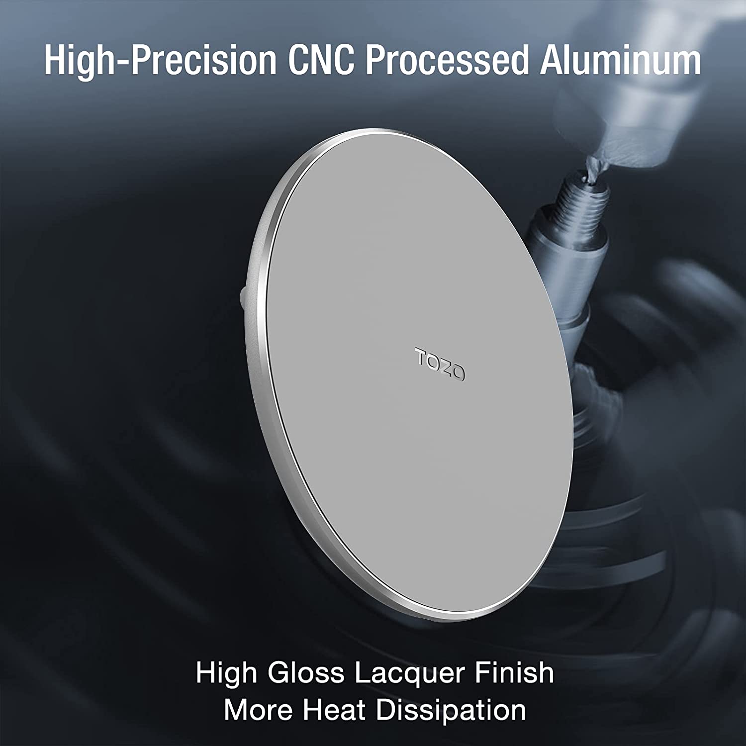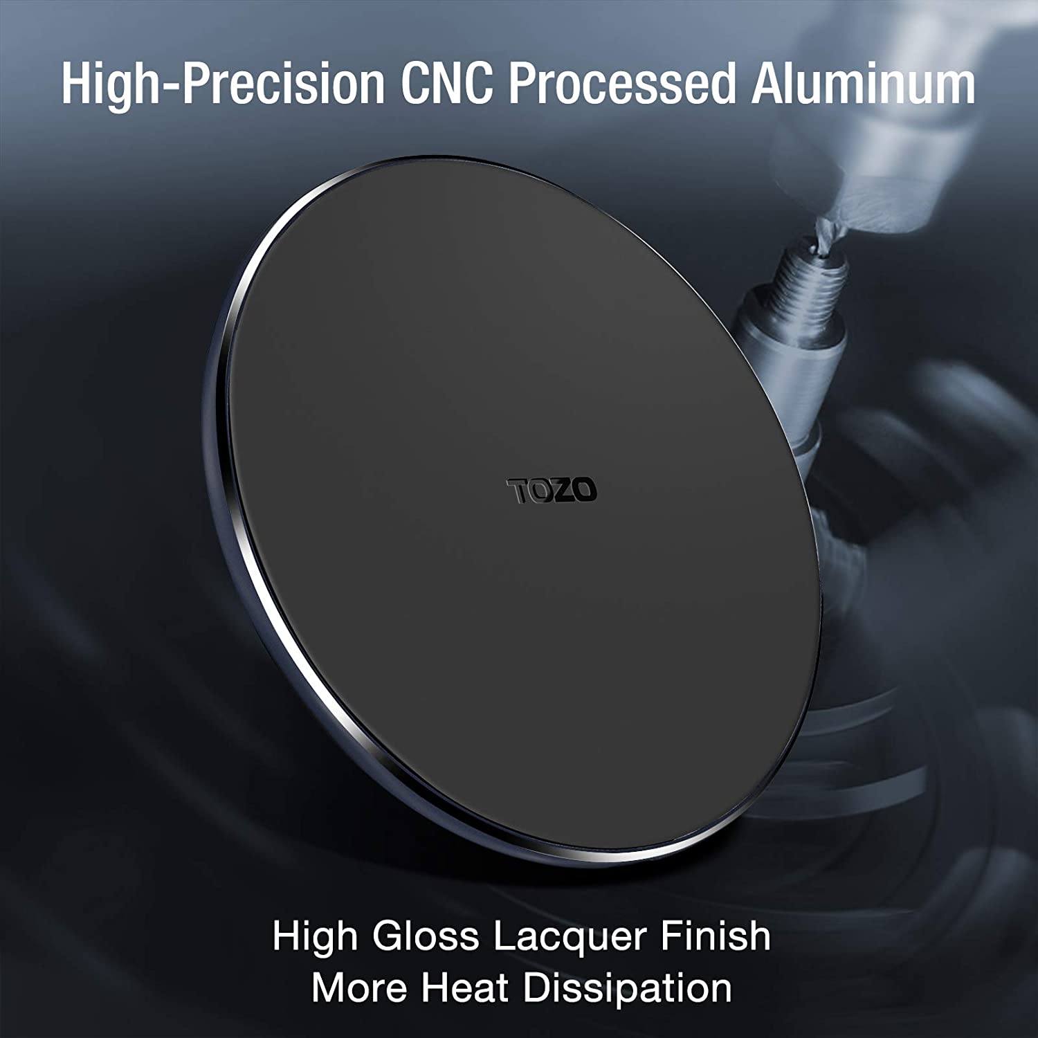 TOZO W1 Wireless Charger 10W Thin Aviation Aluminum Computer Numerical Control Technology Fast Charging Pad Black (NO AC Adapter)