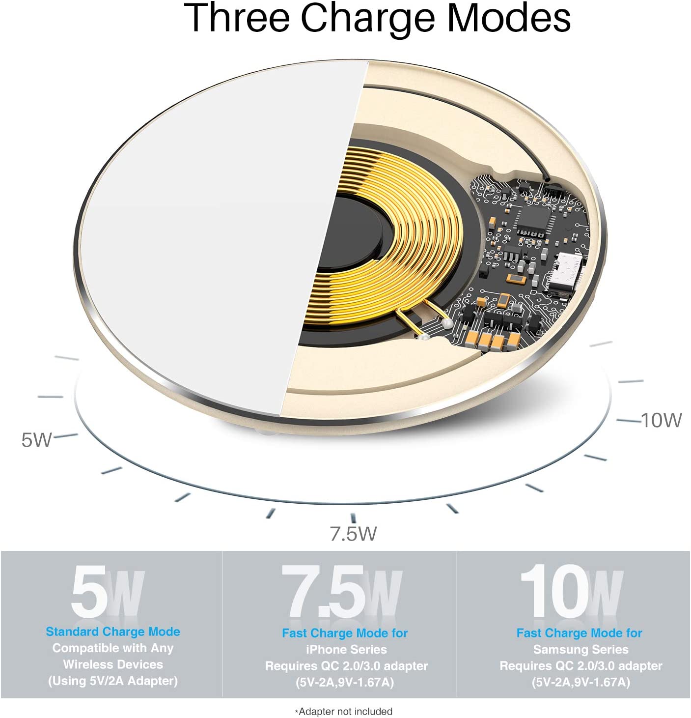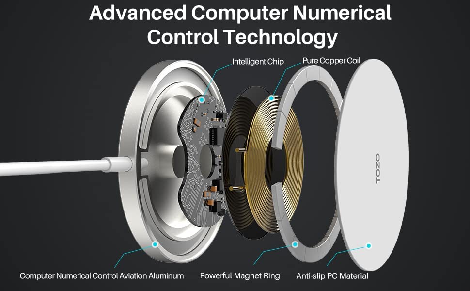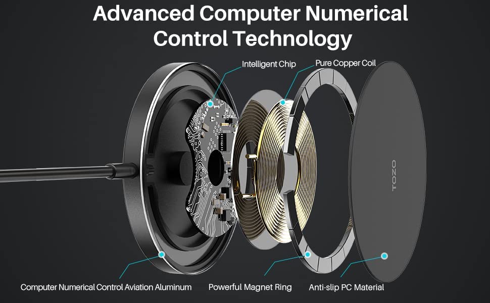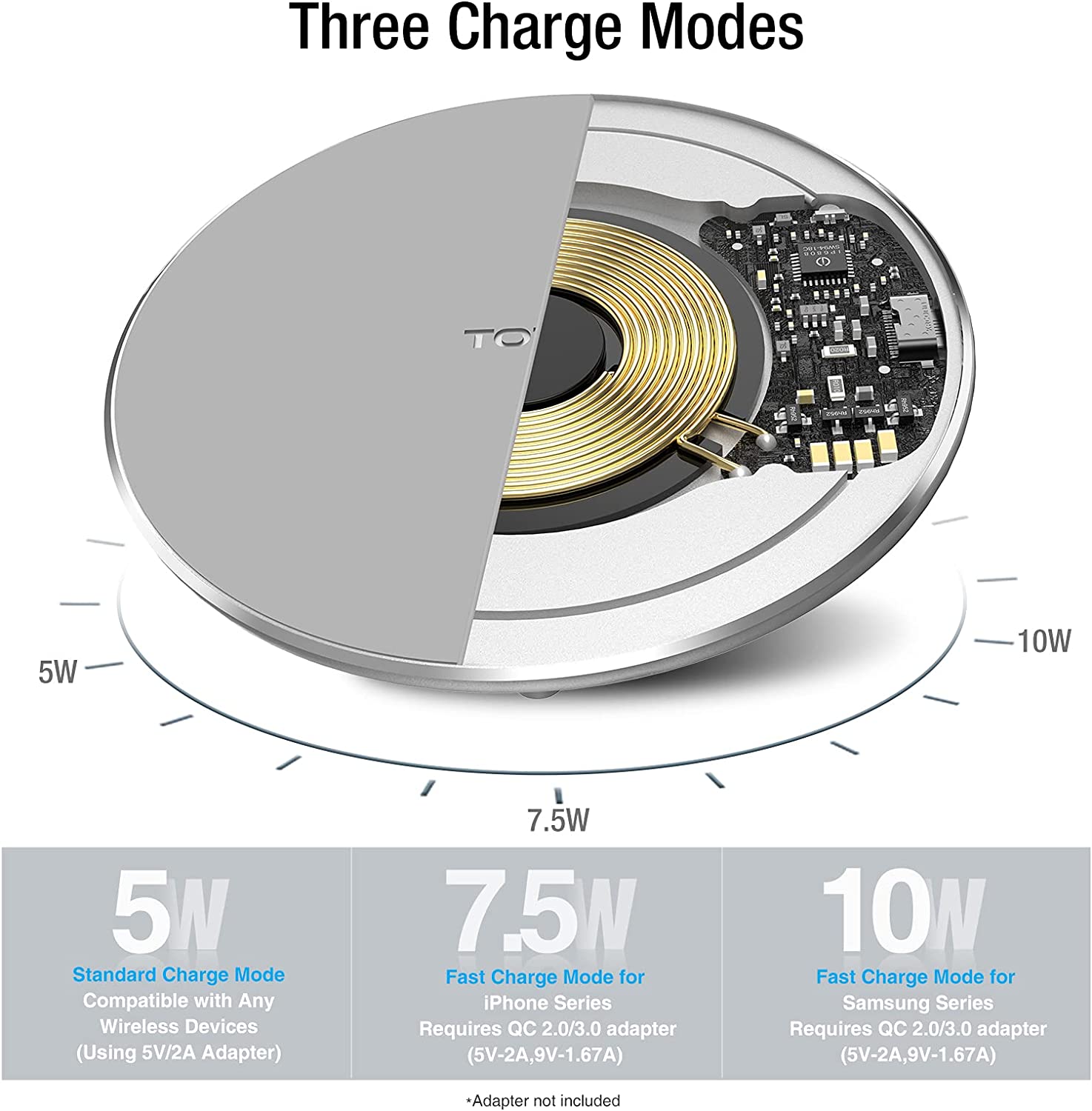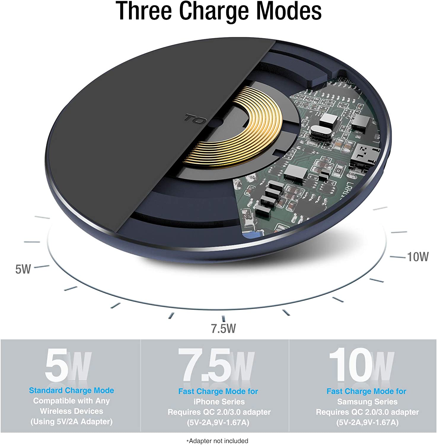 TOZO W1 Wireless Charger 10W Thin Aviation Aluminum Computer Numerical Control Technology Fast Charging Pad Black (NO AC Adapter)