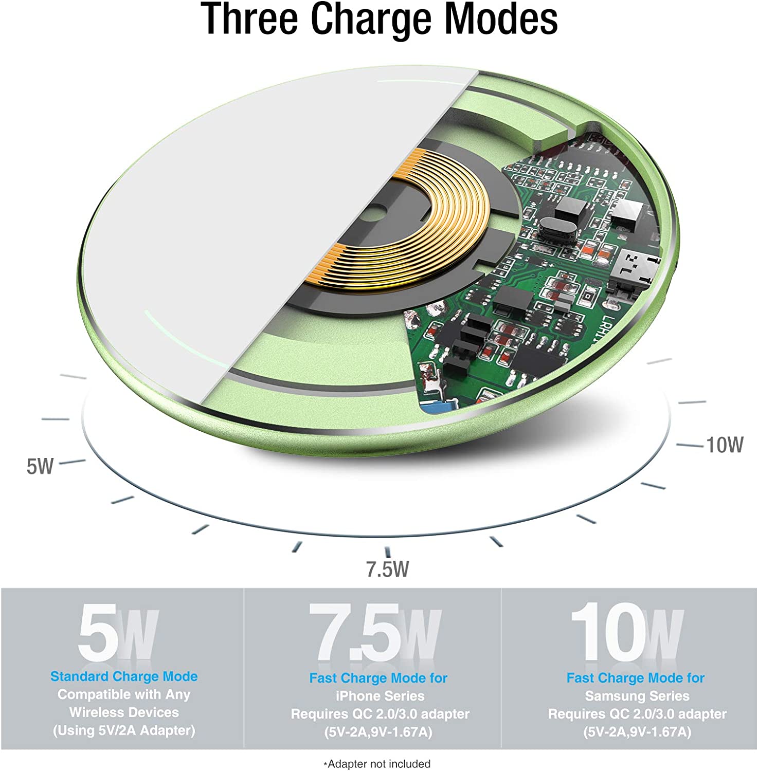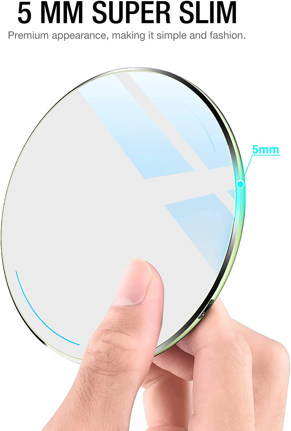 • 【Thin and Slim】5mm thickness & 100mm width-slimmest wireless charger. Durable Fashion Simple panel and aviation aluminum. Simple and fashion.