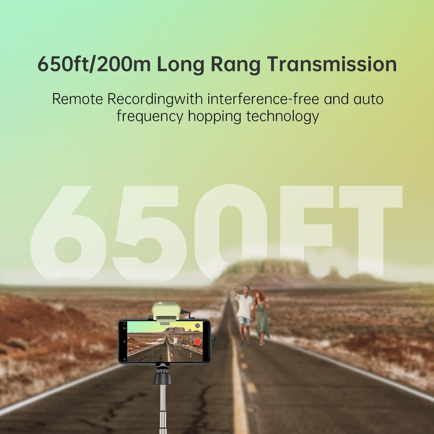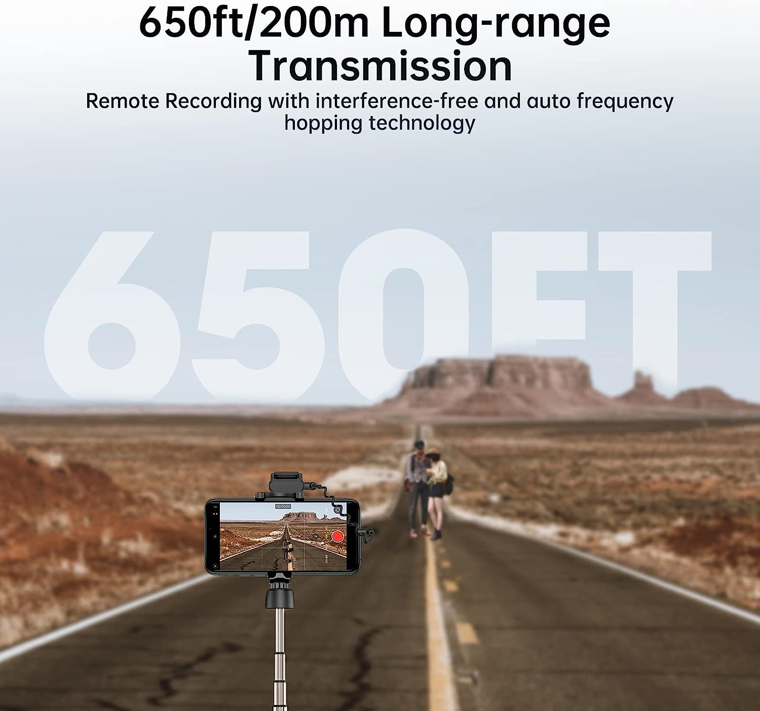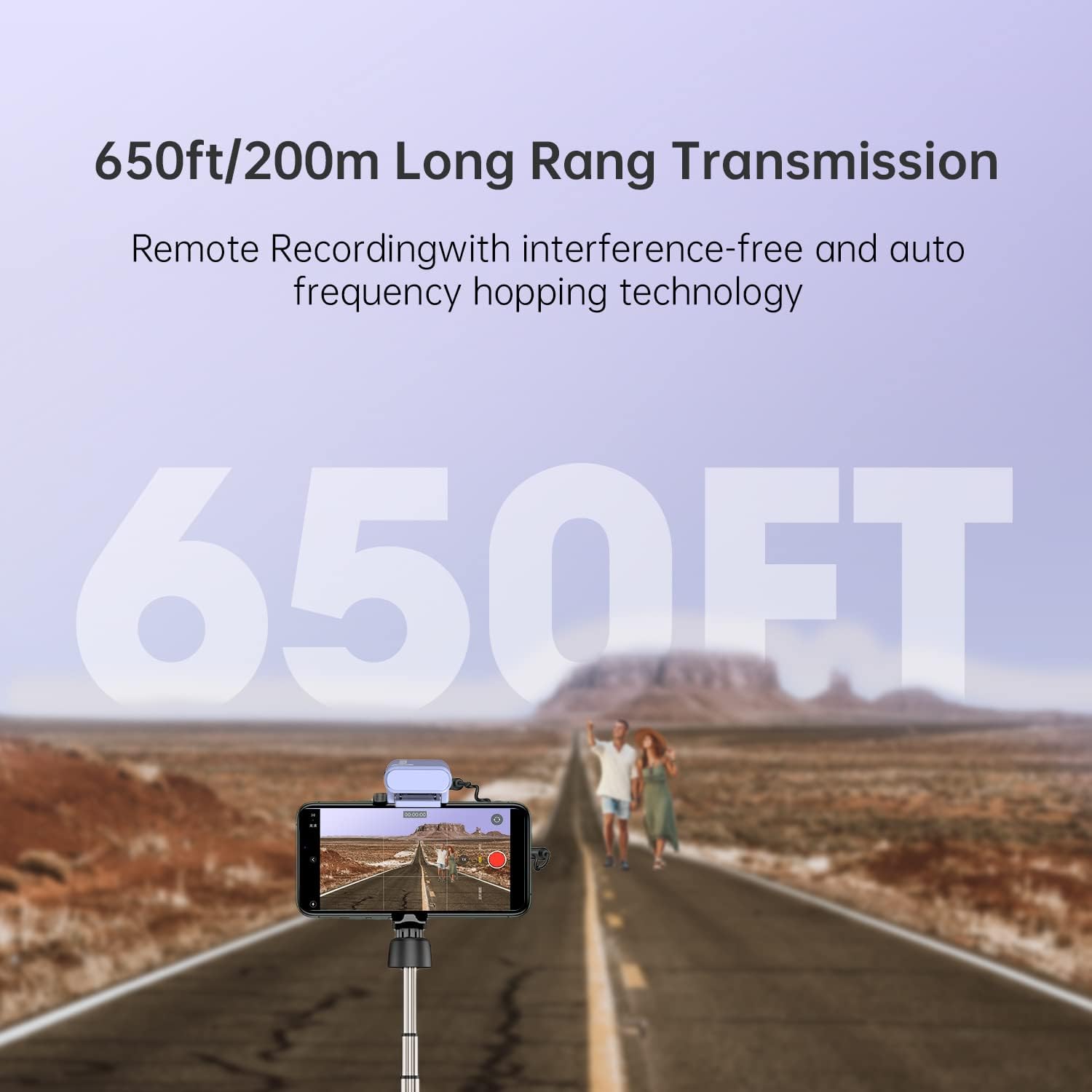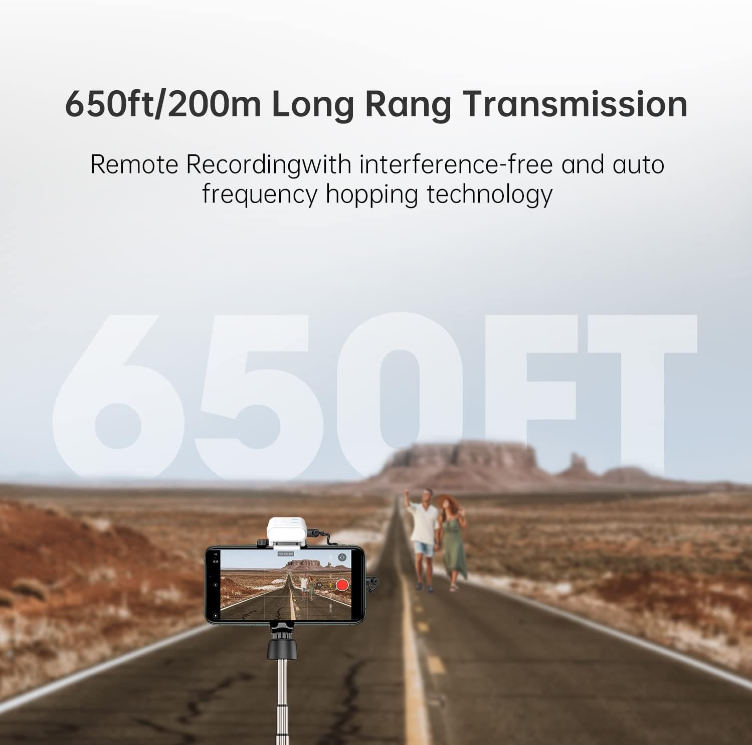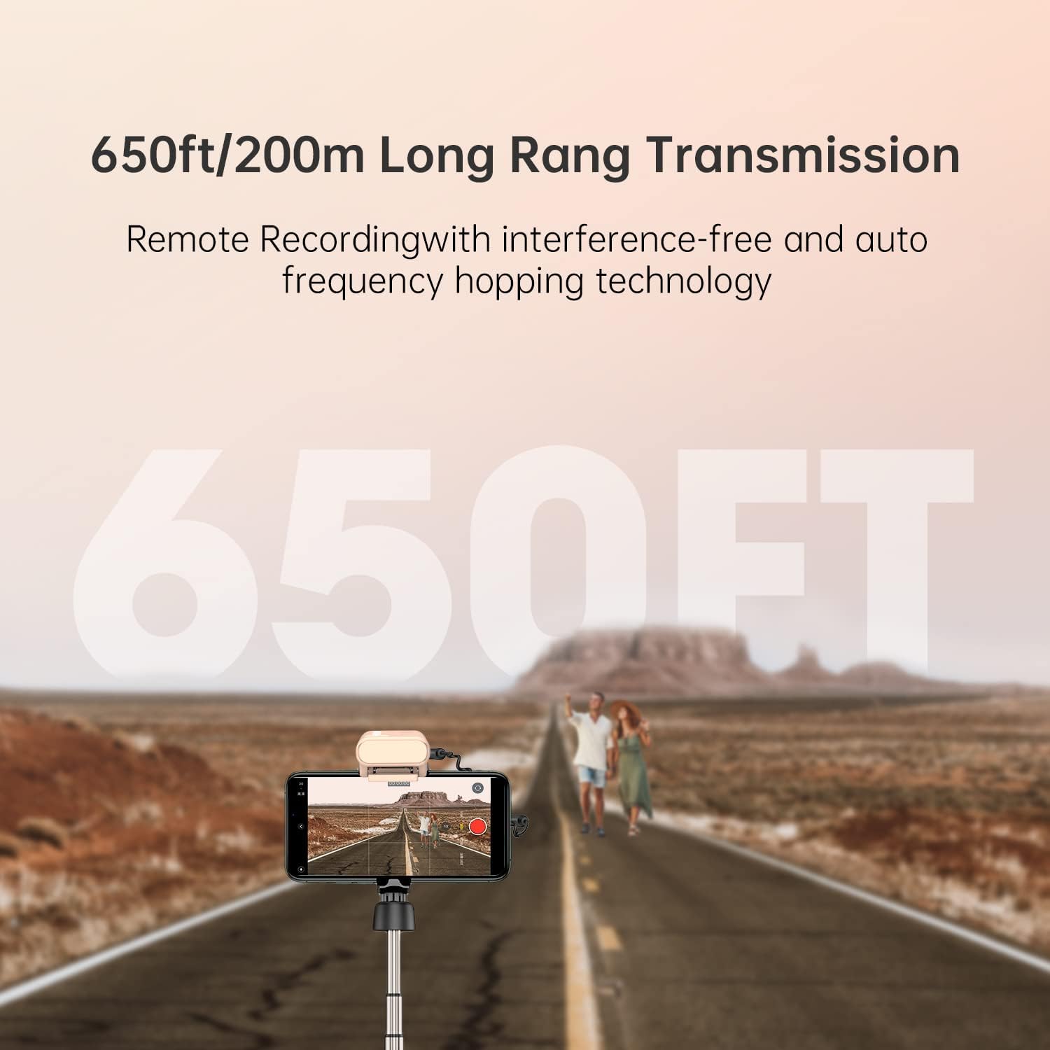 • 656ft Long Rang Wireless Transmission Range. Lark M1 lapel wireless microphone supports up to 650ft stable and reliable and high fidelity audio receiving working distance in open space, make you easily handle complex environments.