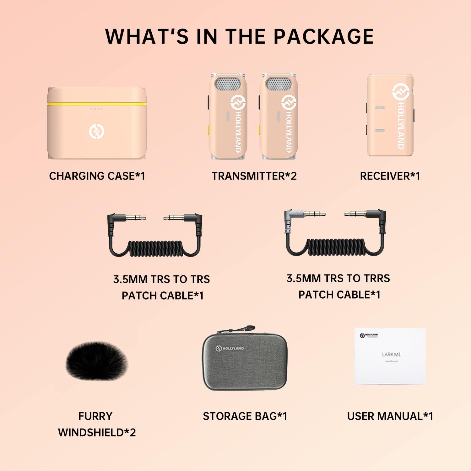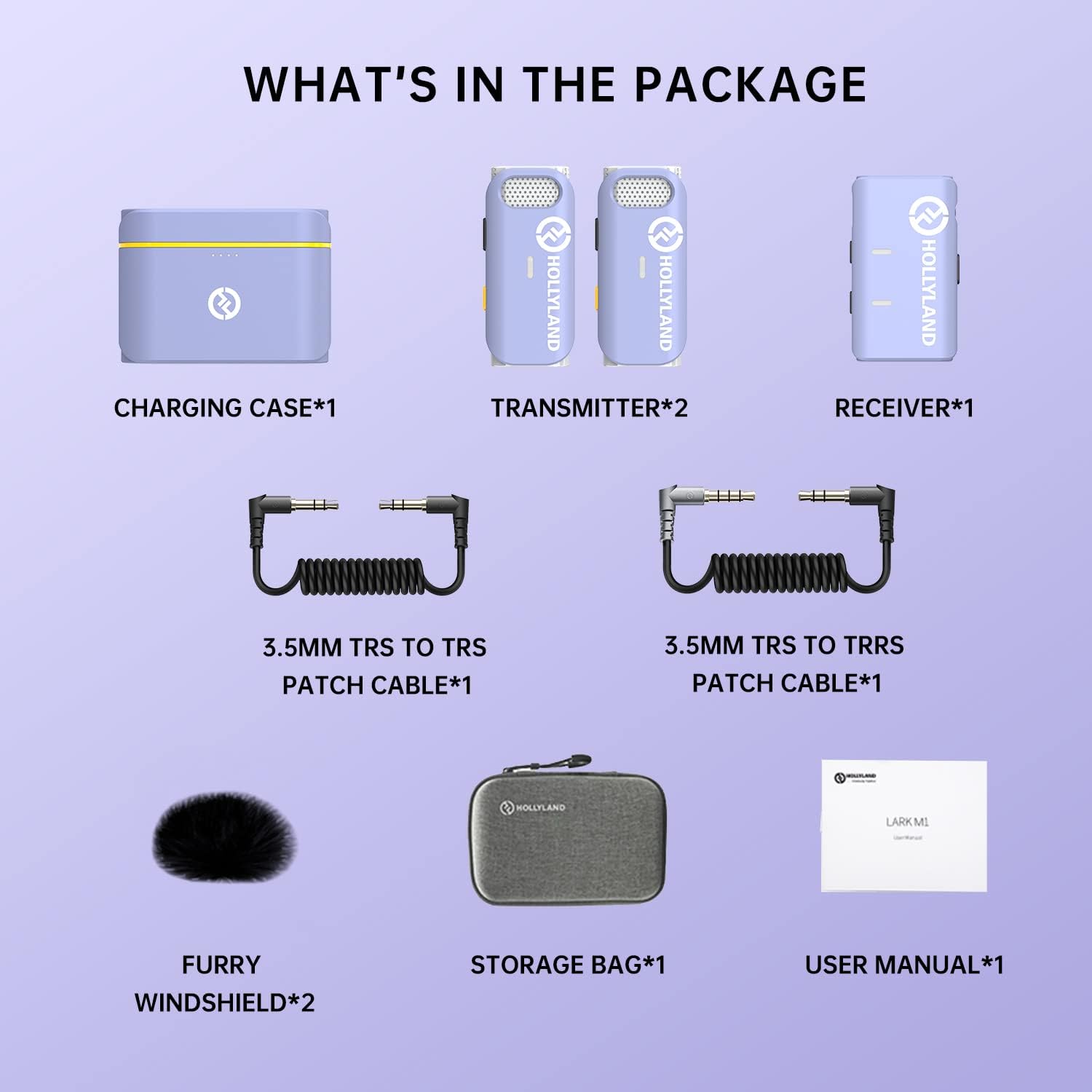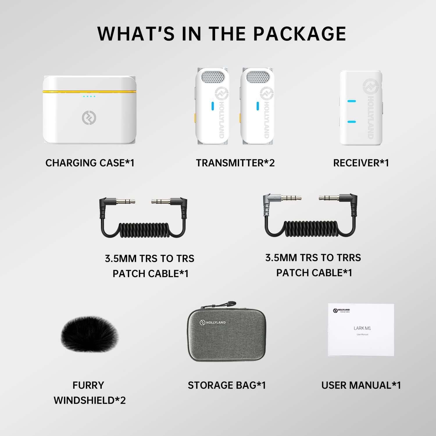• Wide Compatibility. Lark M1 wireless lavalier mic works with all kinds of devices. Included a 3.5mm-TRS-to-TRS cable for all kinds of DSLR cameras, and a 3.5mm-TRS-to-TRRS cable for computers/phones with a 3.5mm port. (3.5mm-TRS-to-lightning cable for iPhone/iPad or 3.5mm-TRS-to-Type-C cable for Android phones was not included).