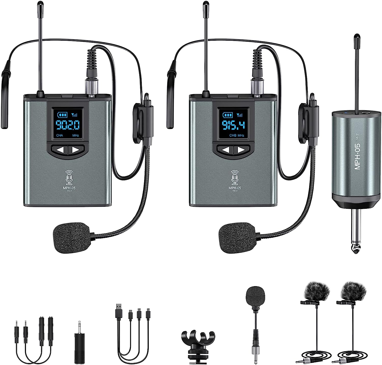 • Multi Applications - This microphone system is ideal for living performances like preaching in church, weddings, teaching, presentations, school plays, training, public speeches, interviews, or video and audio recording. It can also serve as a nice tool for fitness /exercise instructors. This set of wireless microphones is packaged well in a box so that it can be as a Birthday/Valentine's/Usual gift for microphone aficionados.