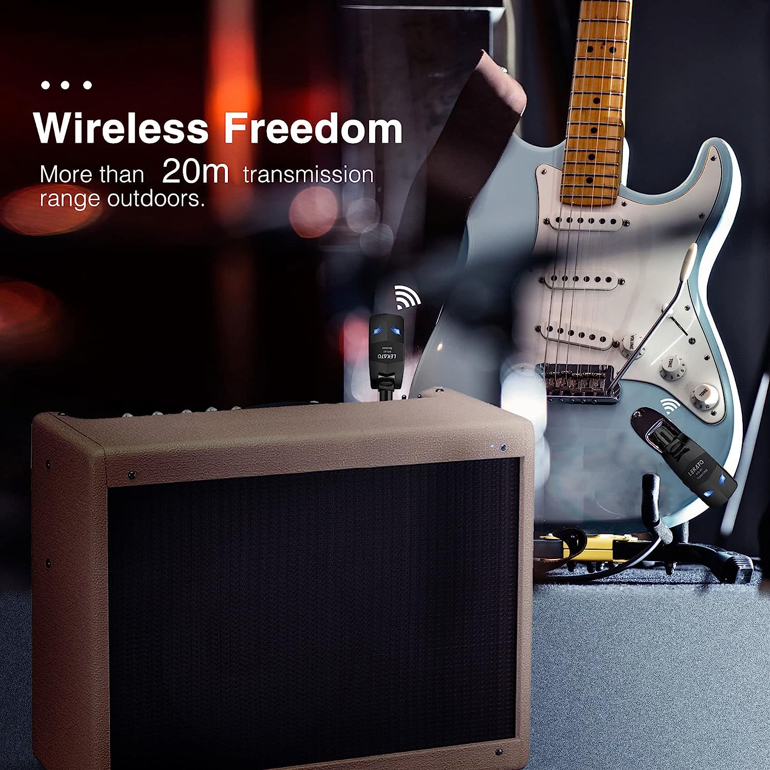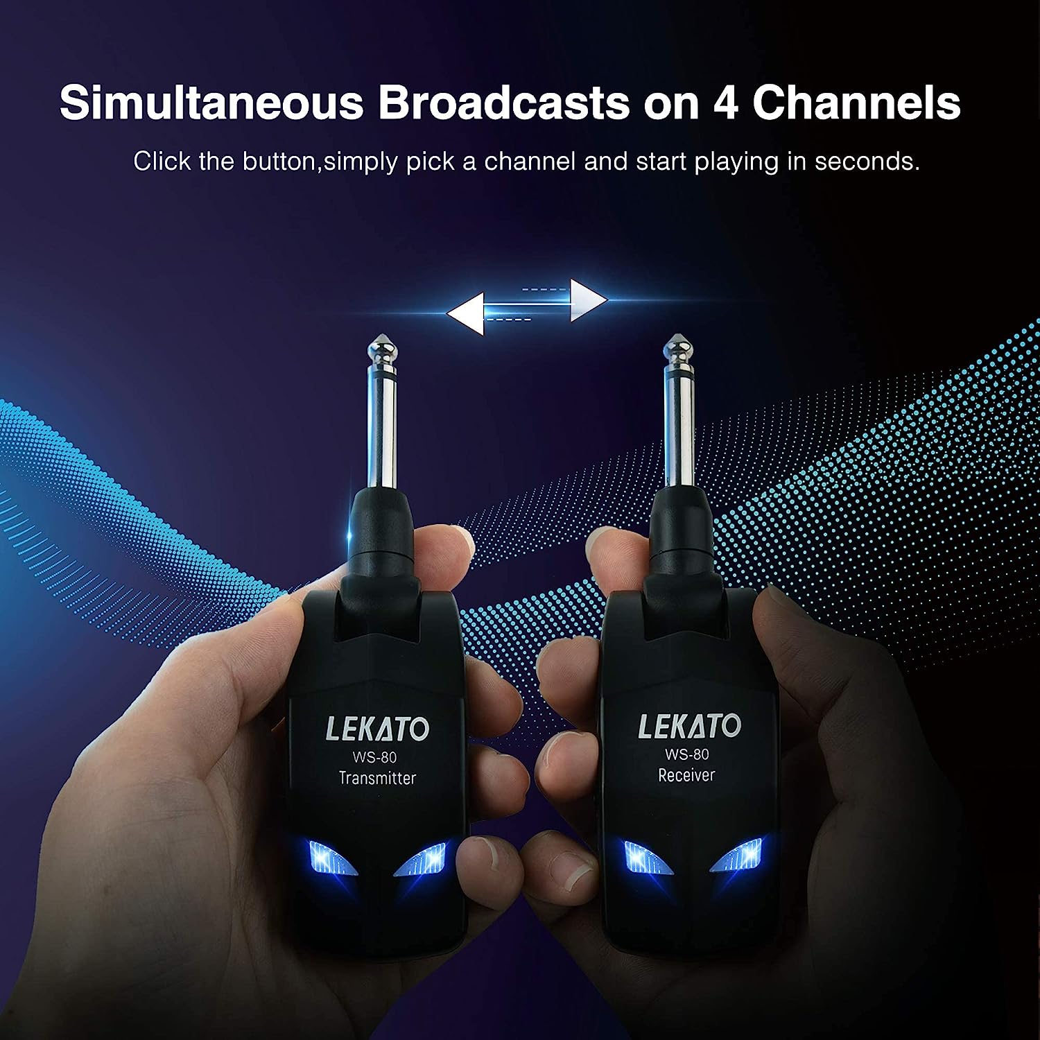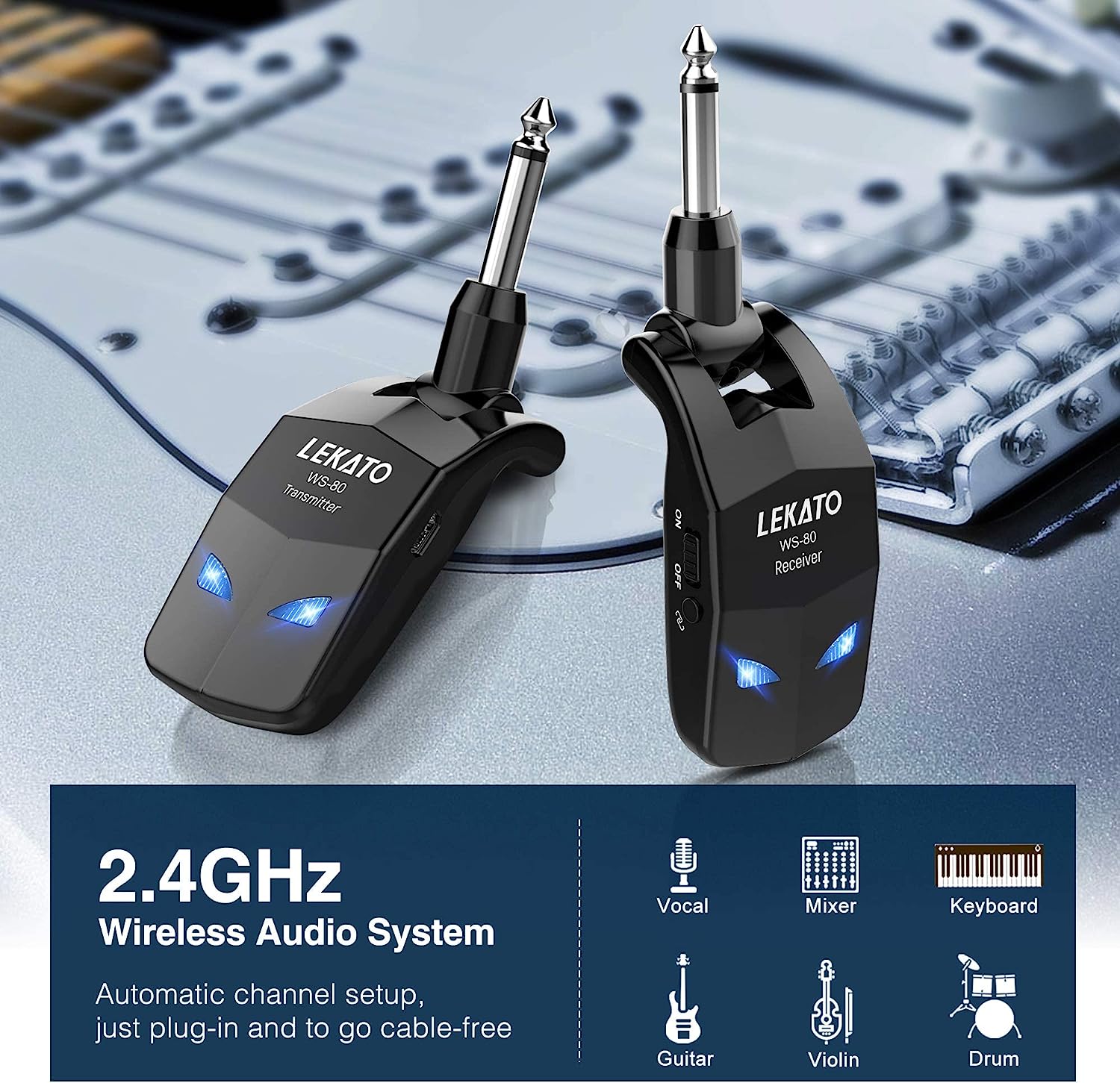 • 🎸 8H Battery Life : LEKATO WS80 wireless guitar transmitter receiver built in rechargeable lithium battery. The working time up to 8 hours after fully charged, no need to charge your device frequently, long working hours can ensure good performance for your every show.