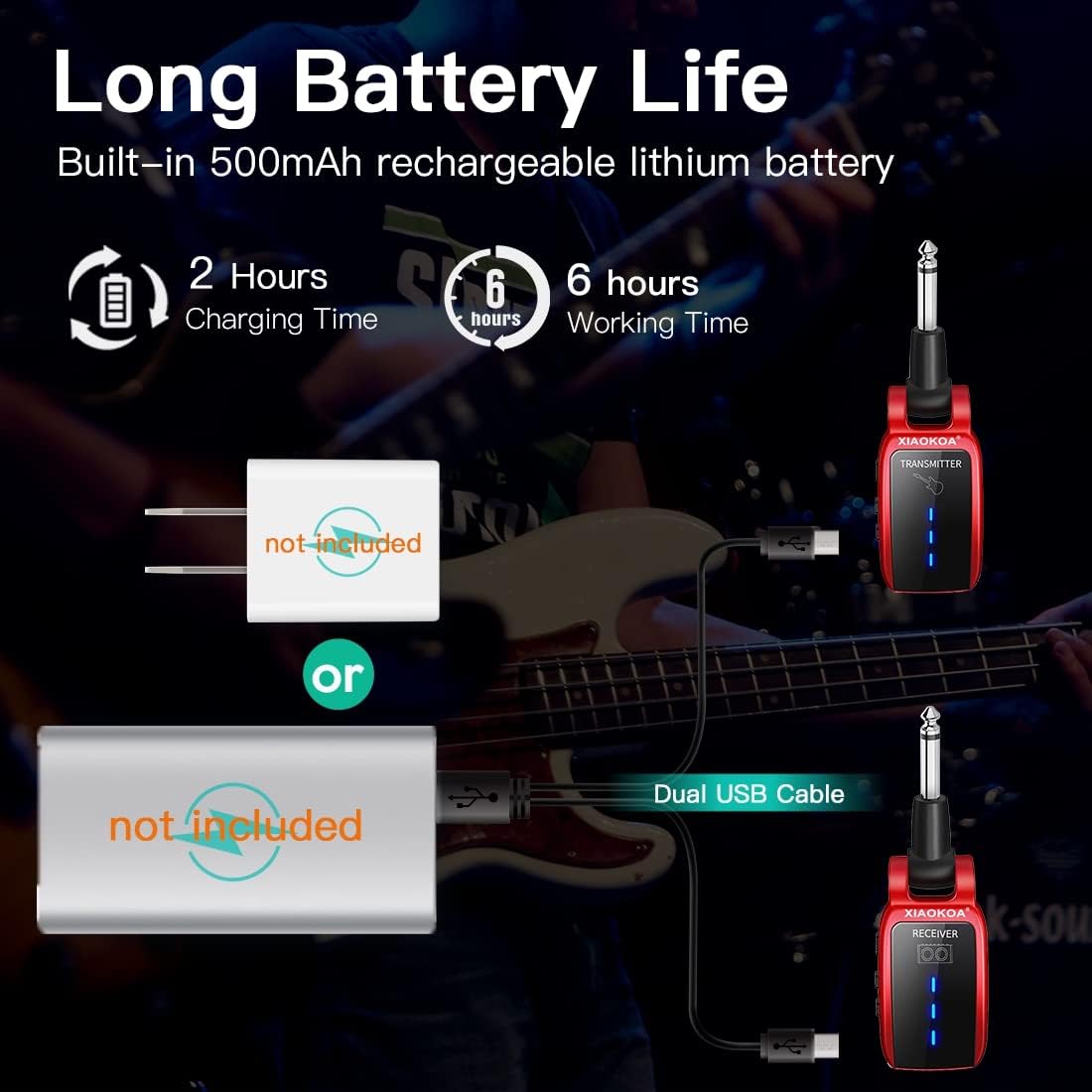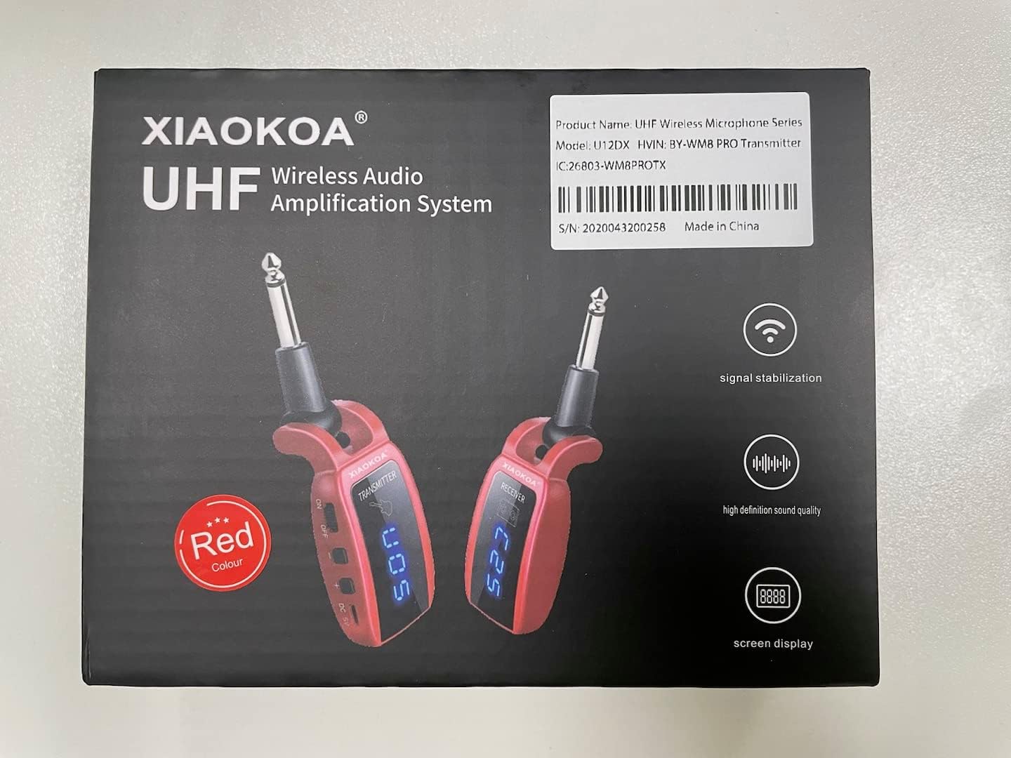 Wireless Guitar System,XIAOKOA UHF Wireless Guitar Transmitter Receiver 164Feet Range with HD LED Screen for Electric Guitar Bass Musical Instruments (Red)