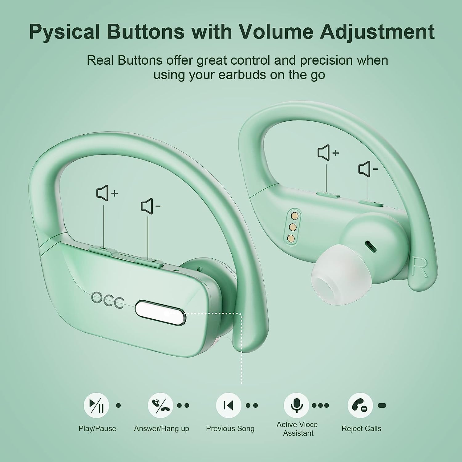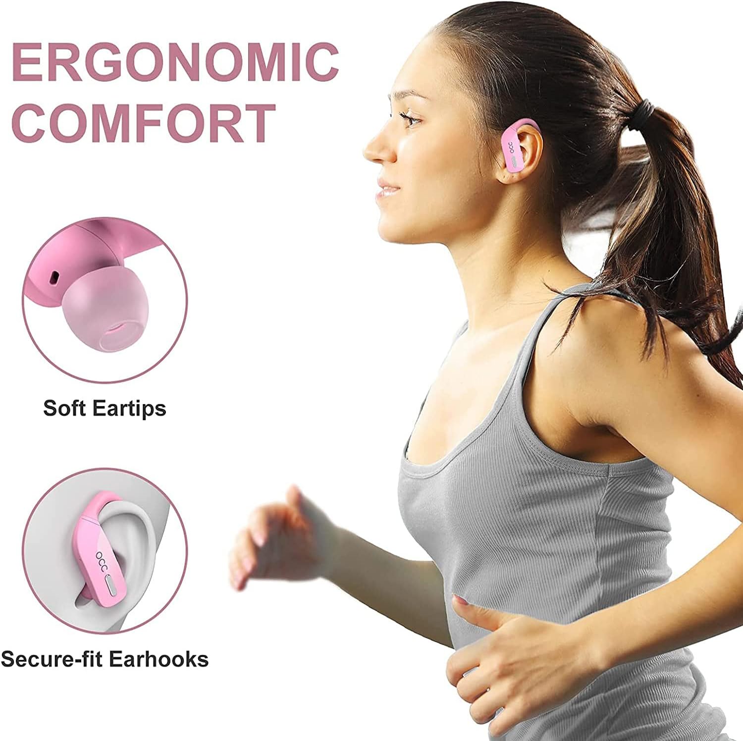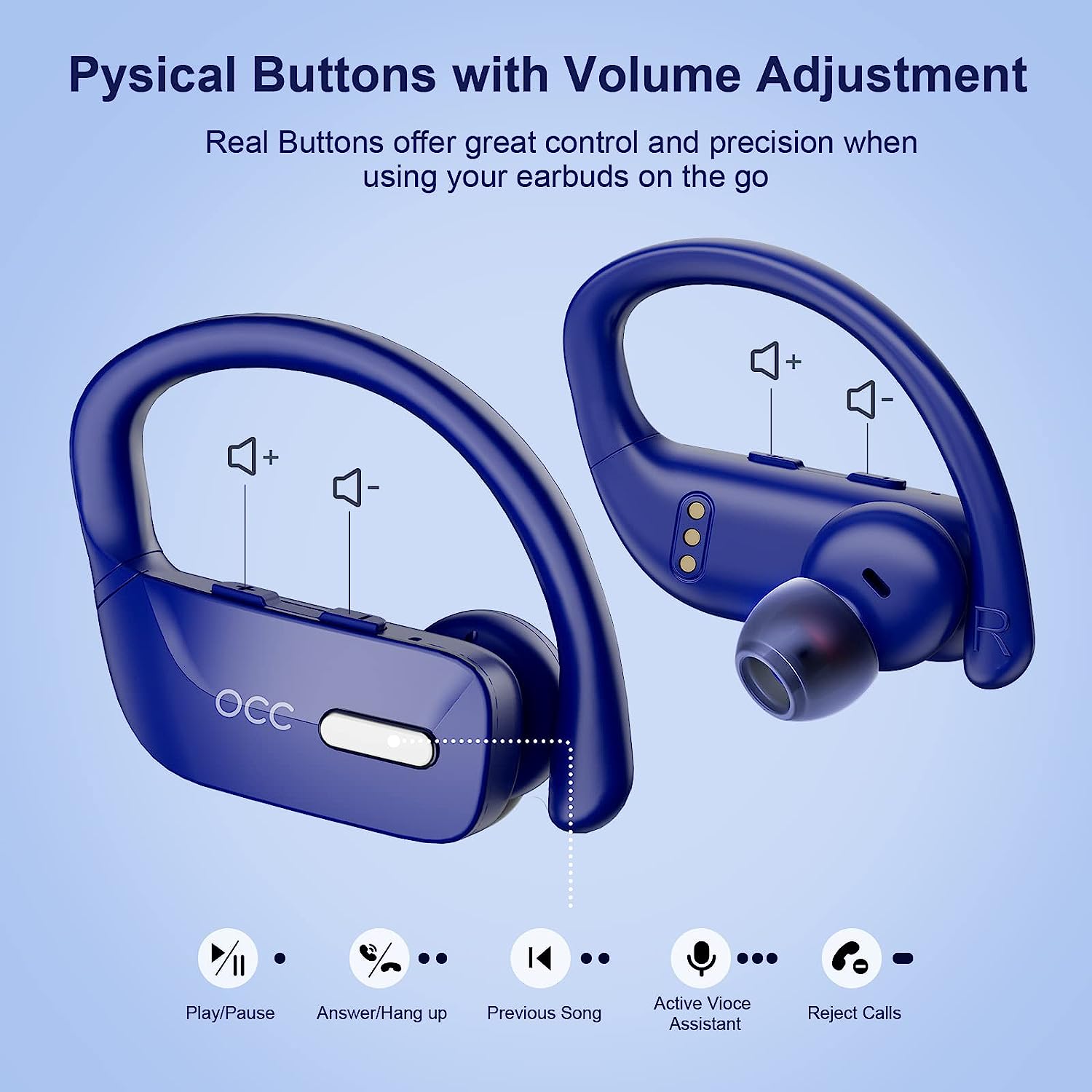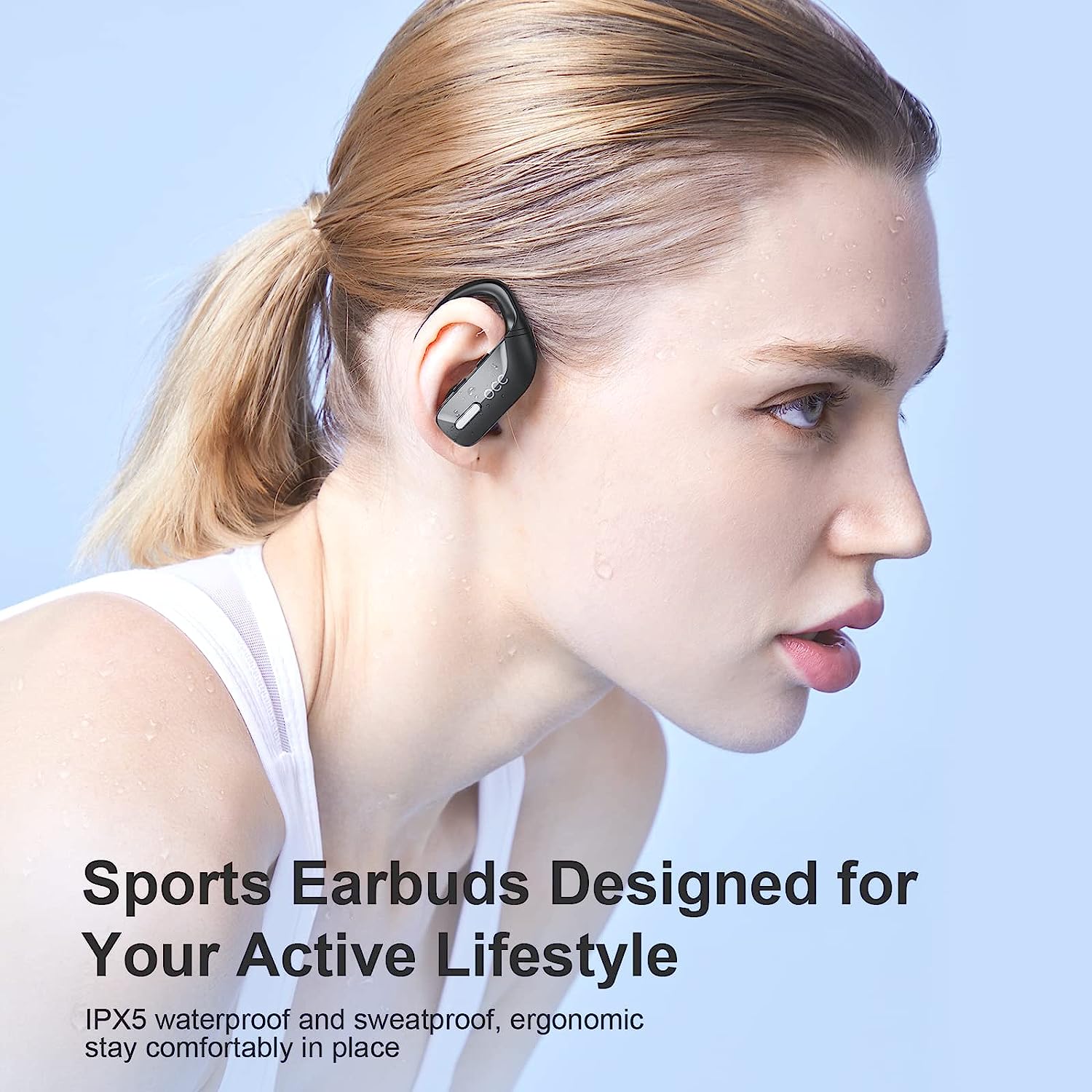 • Engineered Design for Sports: The wireless Bluetooth earbuds are designed with adjustable and secure-fit silicone ear hooks and an ergonomic design, ensuring a comfortable and firm fit during running, and other outdoor sports activities.They come equipped with 3 pairs of different-sized spare ear caps for options. Even during strenuous exercise,the earbuds wireless Bluetooth will not fall off. And IPX5 waterproof rating protects headphones wirelsess Bluetooth from water drops or sweat damage.