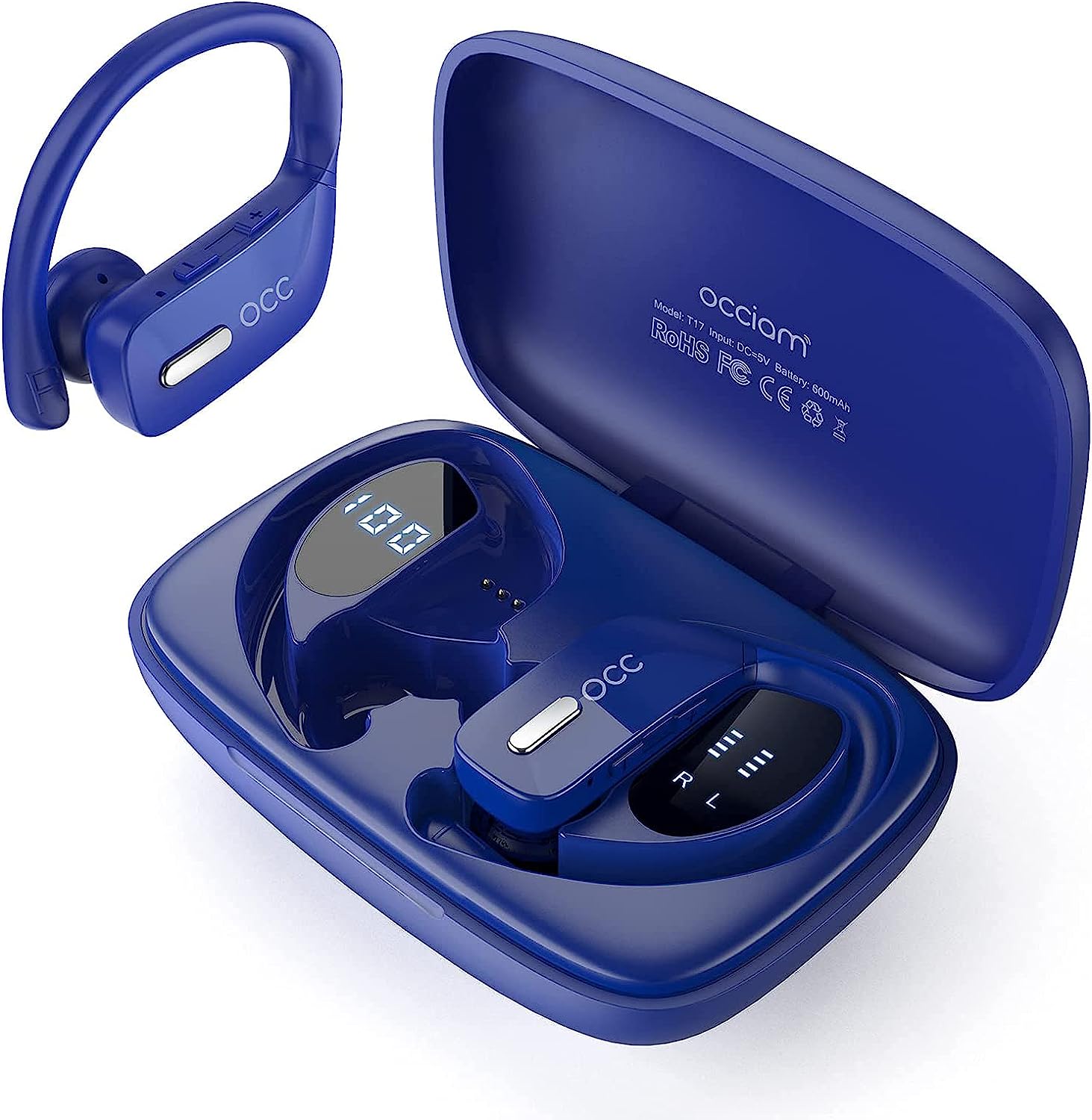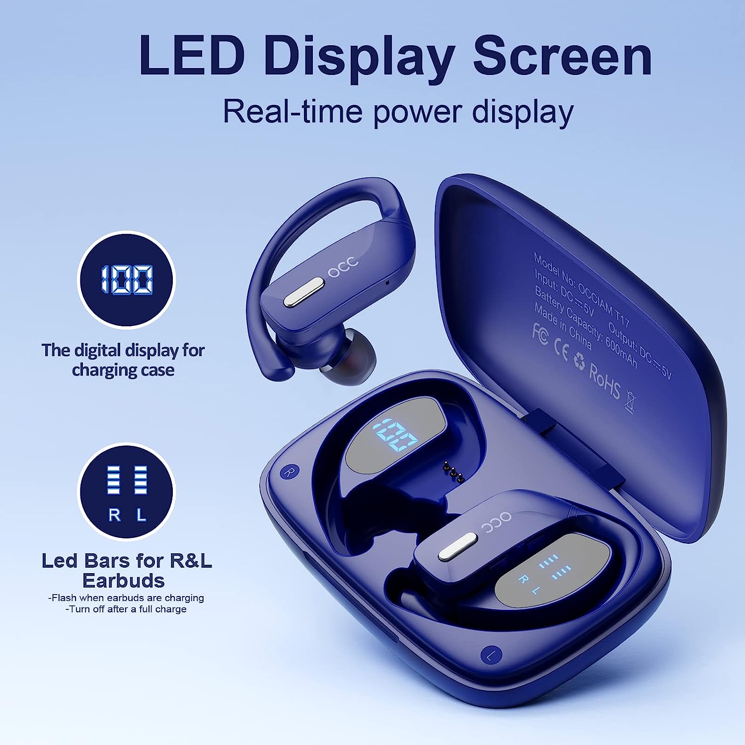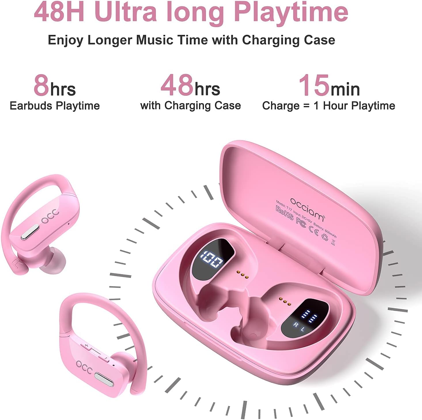 occiam Wireless Earbuds Bluetooth Headphones 48H Play Back Earphones in Ear Waterproof with Microphone LED Display for Sports Running Workout Black