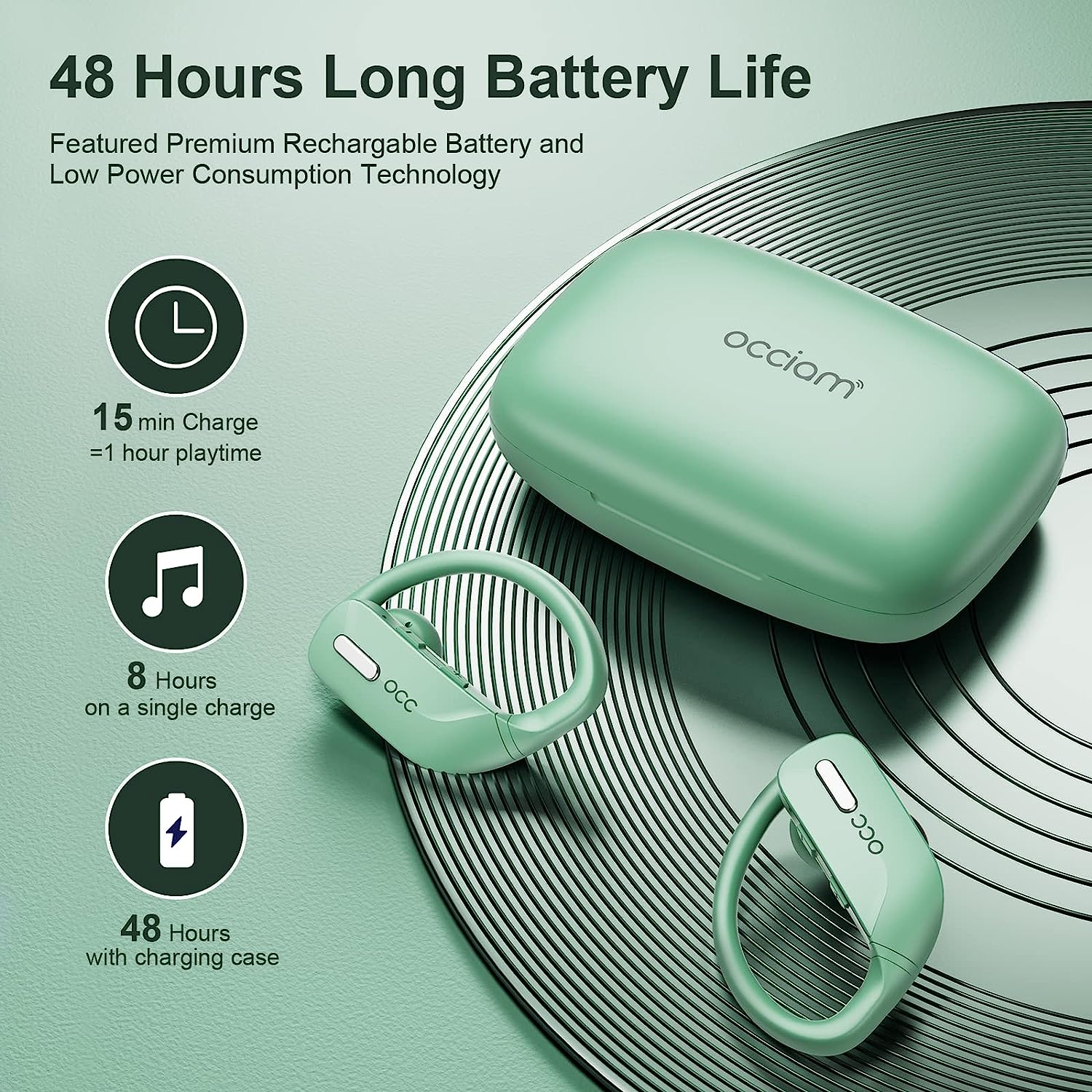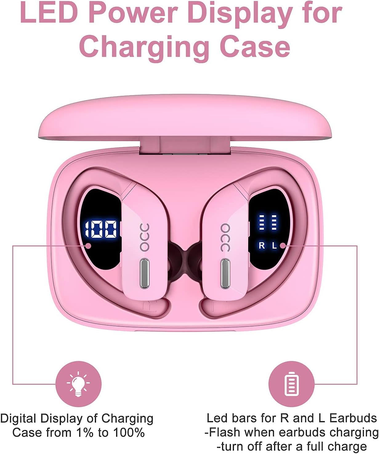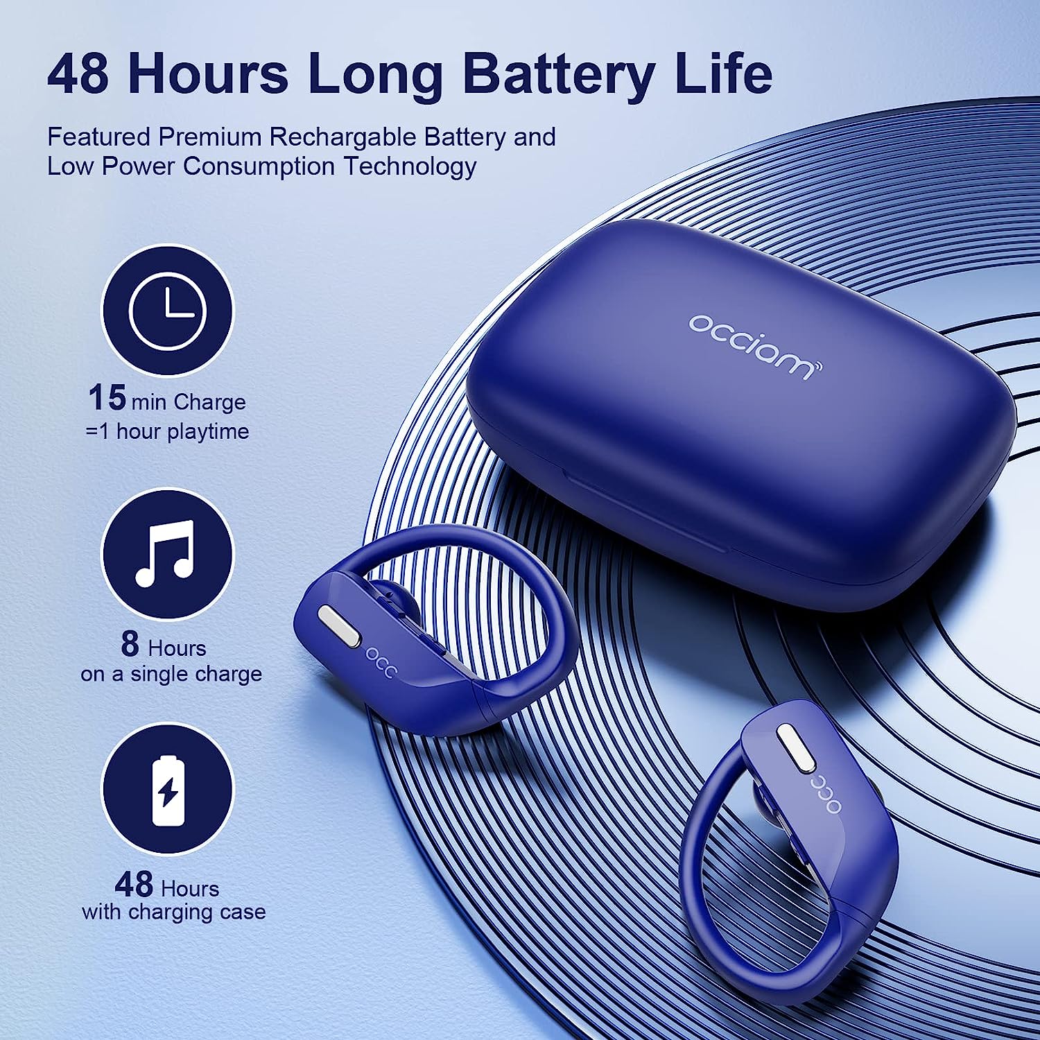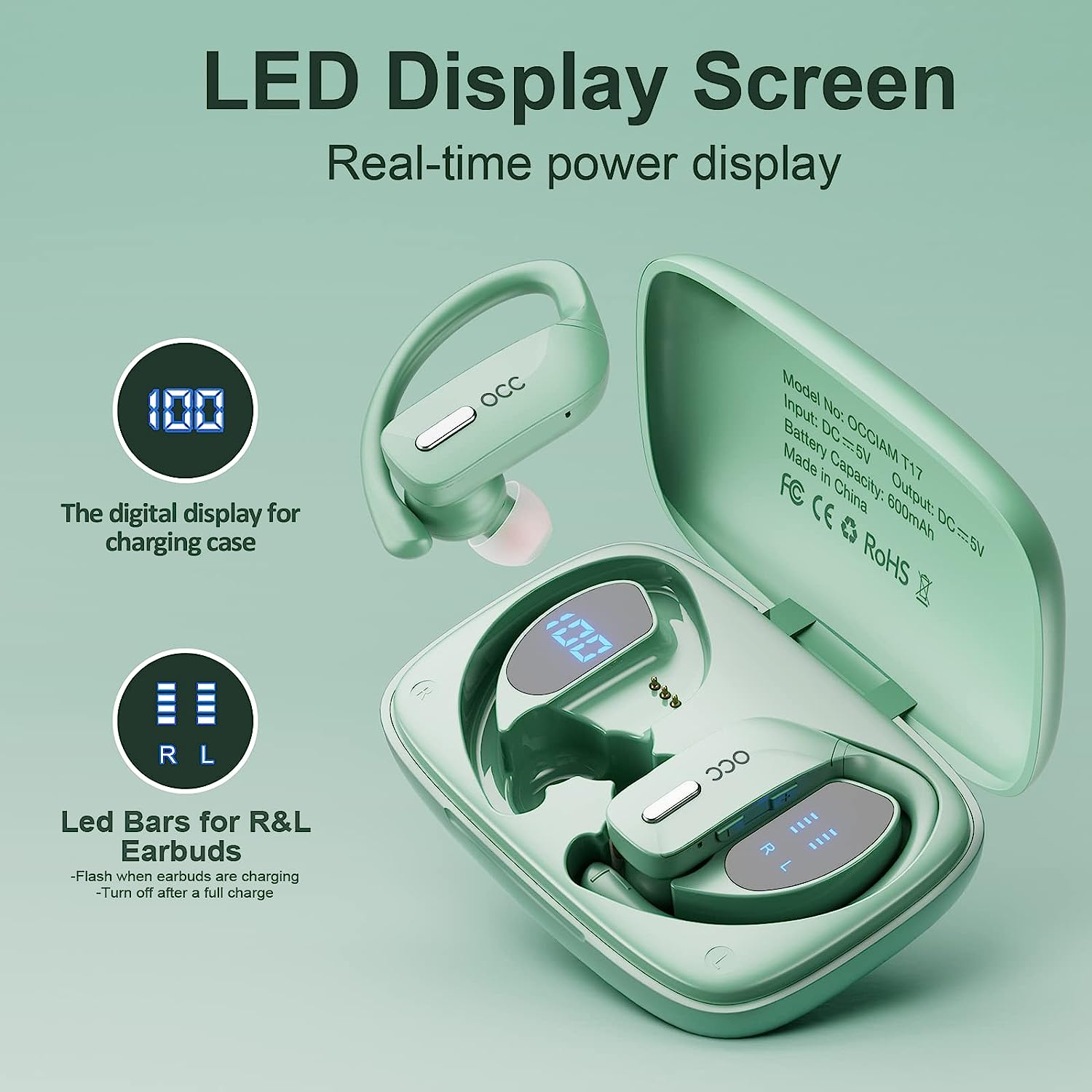 occiam Wireless Earbuds Bluetooth Headphones 48H Play Back Earphones in Ear Waterproof with Microphone LED Display for Sports Running Workout Black
