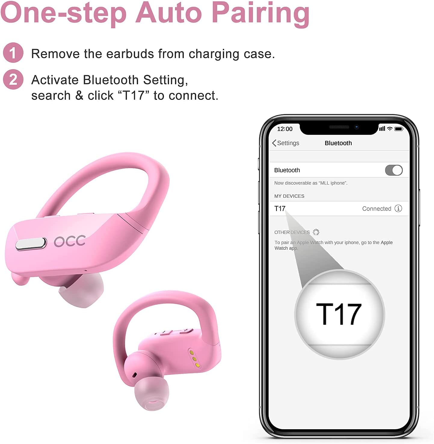 • One-Step Auto Pairing: Simply pick up Bluetooth earbuds wireless from the charging case, and they will power on and automatically pair with each other.Then activate Bluetooth function on your mobile phone and search for "T17" to connect. After the initial successful connection,the earbuds wireless Bluetooth will automatically connect to the last paired device upon reboot.When using a single earbud wireless, just remove the second one to seamlessly transition between single mode and twin mode.