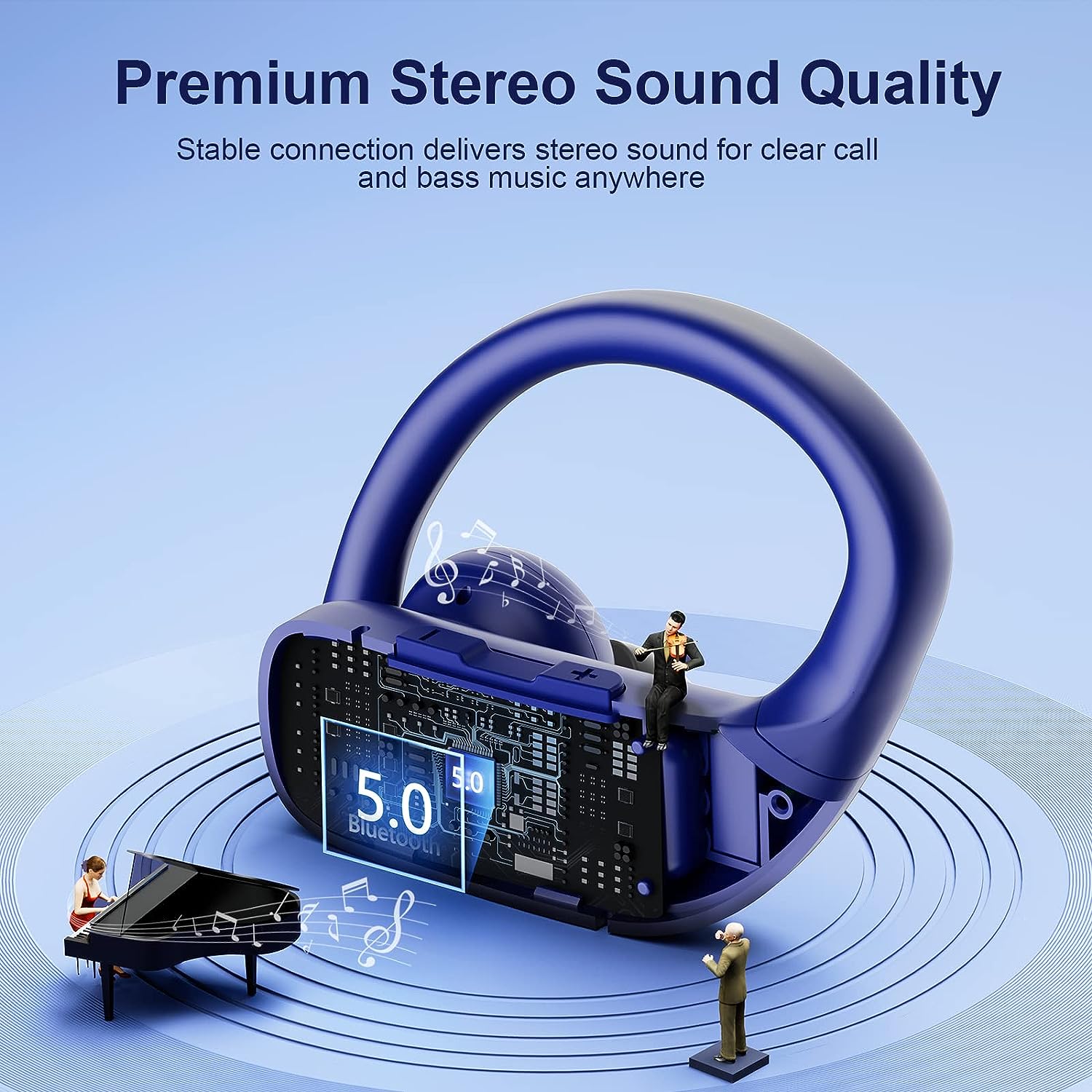 • Stereo Music & Clear Call: With audio technology, Bluetooth wireless earbuds produce rich, immersive sound with deep bass and clear treble.The true wireless earbuds feature noise-canceling calls, effectively reducing partial background noise, guaranteeing a stable signal and minimal power usage during phone calls.Experience immersive stereo sound and enjoy hands-free calls while working out, wirelessly and effortlessly.