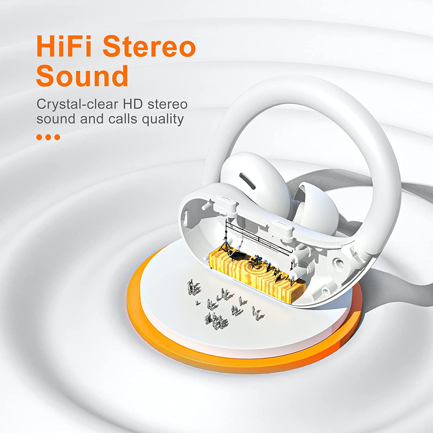 • Hi-Fi Stereo Bass & Crystal-clear Calling: The wireless headphones adopt 10mm speaker which provides stereo sound with deep bass and clear treble. You will hear clear HD stereo sound with punchy bass, reproducing your music vividly. The true wireless earbuds feature noise-canceling calls, effectively reducing background noise, creating a stable and clearer calling environment like you are communicating face to face with others.