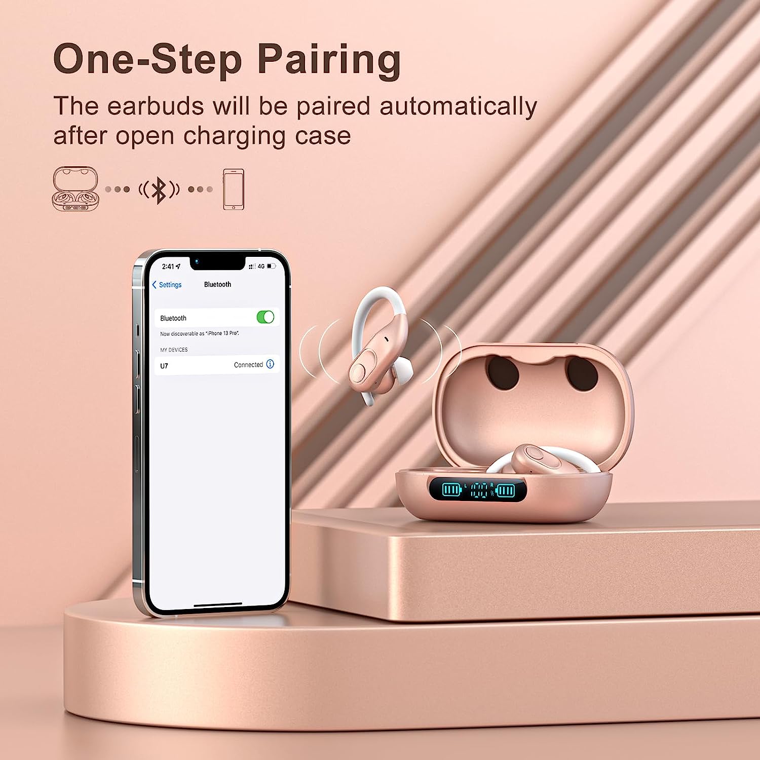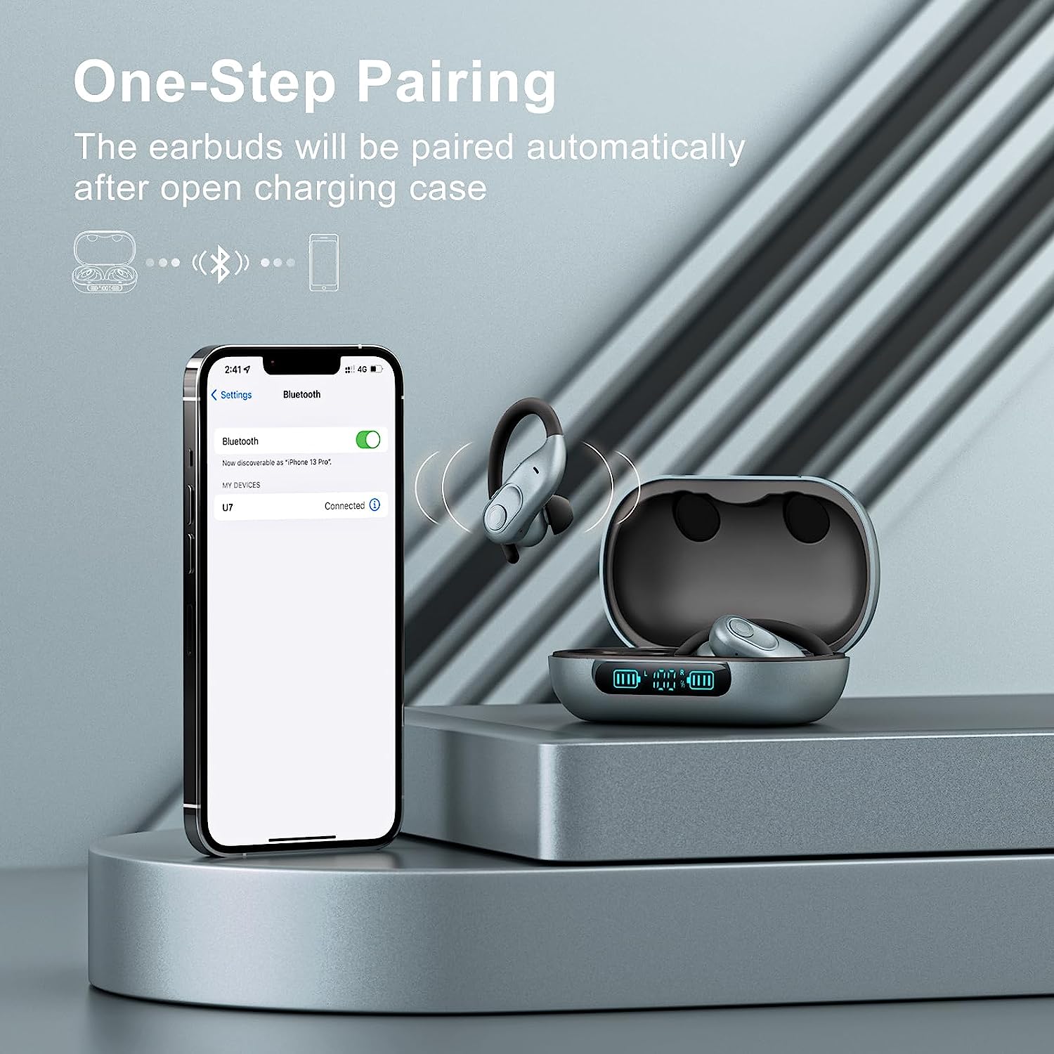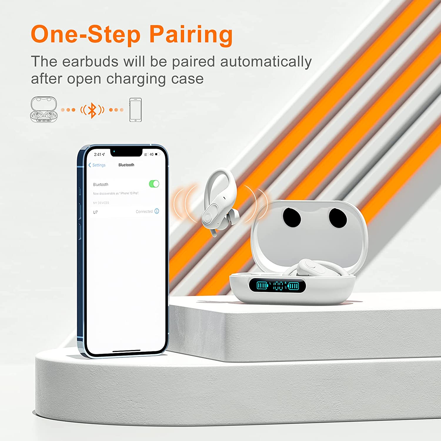 • Latest One-step Pairing Technology: No need to press any button to activate the wireless headphones. This Bluetooth earbuds can be automatically powered on and paired after open the charging case. Meanwhile Bluetooth headphones can also be automatically powered off and charged after putting back into the charging case. Simply one press to answer or reject phone calls, Bluetooth pairing, power on and power off, pretty easy to use.