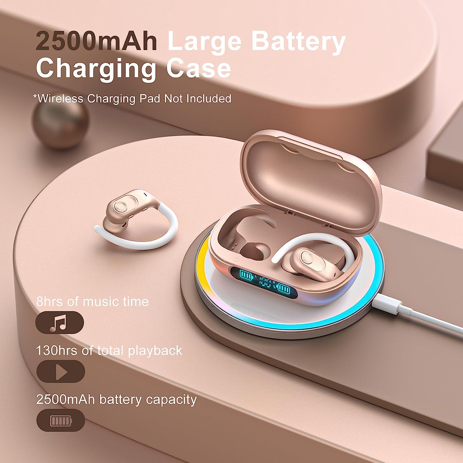 Wireless Earbuds Bluetooth Headphones 130Hrs Playtime with 2500mAh Wireless Charging Case LED Diaplay Hi-Fi Waterproof Over Ear Earphones for Sports Running Workout Gaming