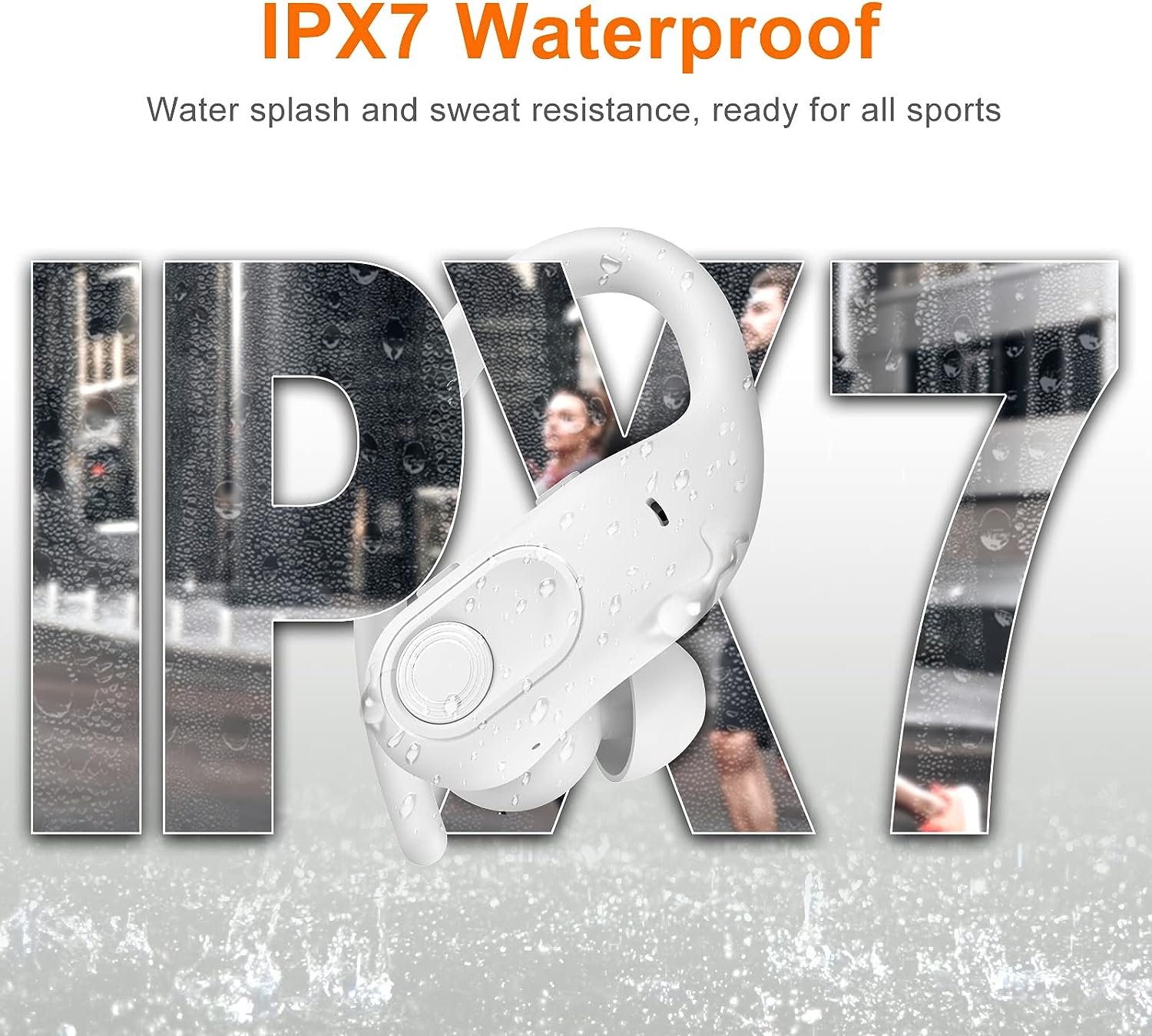 • IPX7 Waterproof: These wireless sport headphones are rating at IPX7 waterproof, the surface of both in ear earbuds is sealed to prevent sweat or rain from entering, and the internal nano-coating to airborne moisture from damaging the components. Protects the Bluetooth earbuds from slight raindrops or sweat during intense workouts. Widely applied to running, exercises, gym, travel, even on a rainy day.