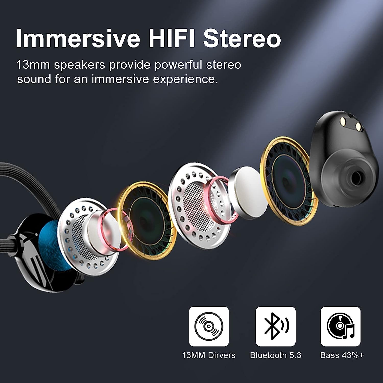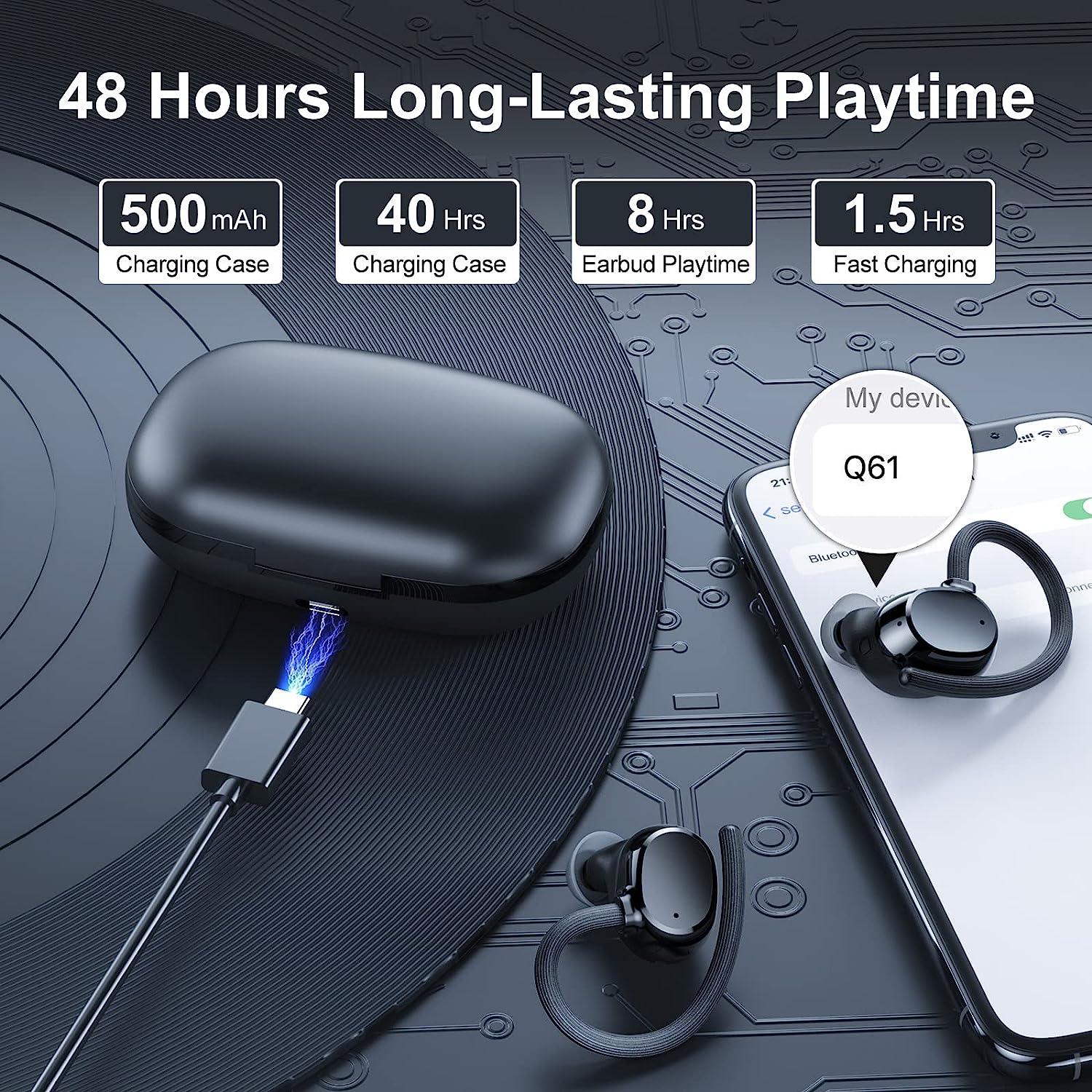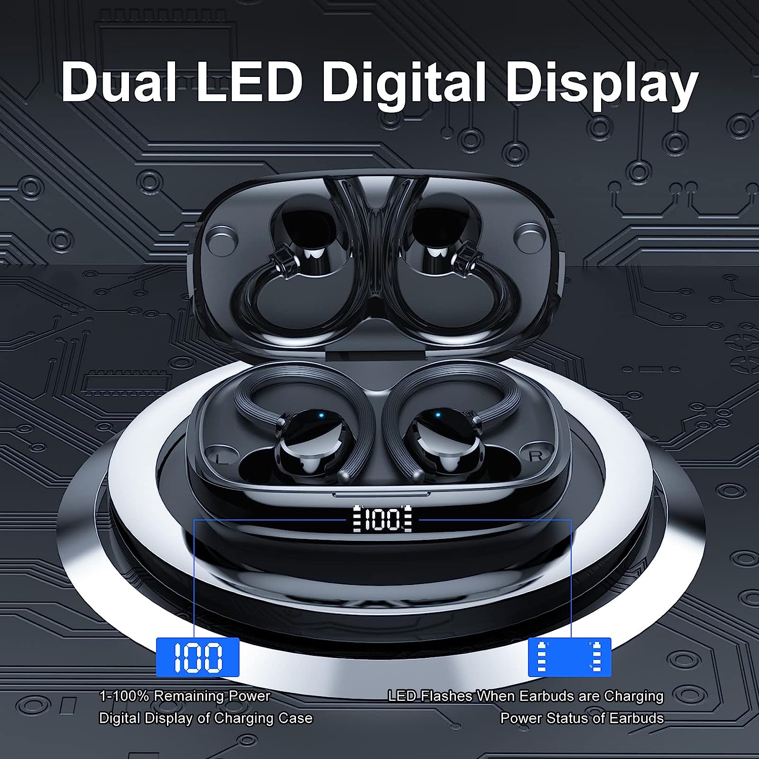 Wireless Earbuds, HiFi Stereo Sport Bluetooth 5.3 Headphones with Earhooks, 48H Deep Bass in-Ear Headphones with LED Display, Noise Cancelling, IP7 Waterproof Earphones Built-in Microphone for Running