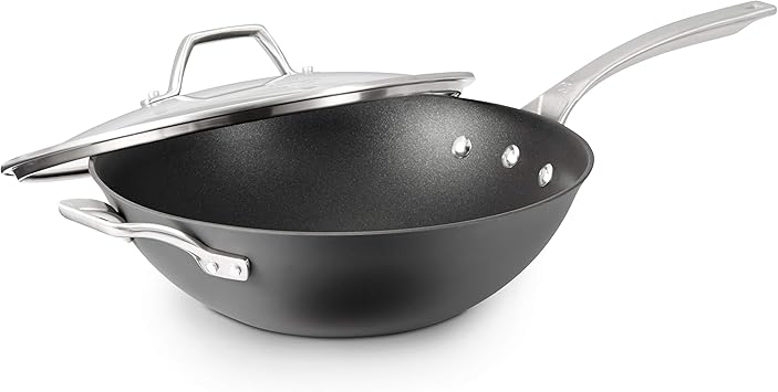 Calphalon Signature Hard-Anodized Nonstick 12-Inch Flat Bottom Wok with Cover