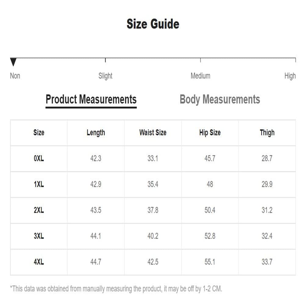 XX-Large Plus: Length: 43.5", Waist Size: 37.8", Hip Size: 50.4", Thigh: 31.2"