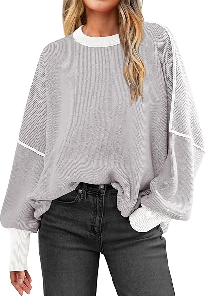 ANRABESS Womens Oversized Sweaters Fall 2024 Fashion Crewneck Batwing Long Sleeve Side Slit Knit Pullover Sweater Tops