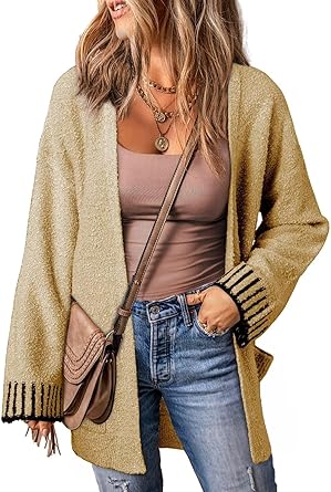 SHEWIN Women Cardigan Sweaters 2024 Open Front Long Sleeve Knit Coat with Pocket