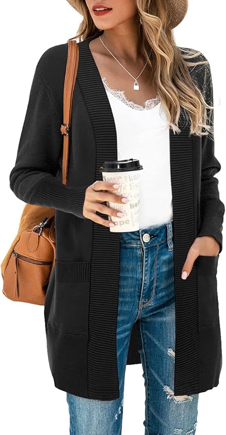 SUEANI Women's Open Front Casual Long Sleeve Knitwear Classic Sweaters Cardigan with Pockets
