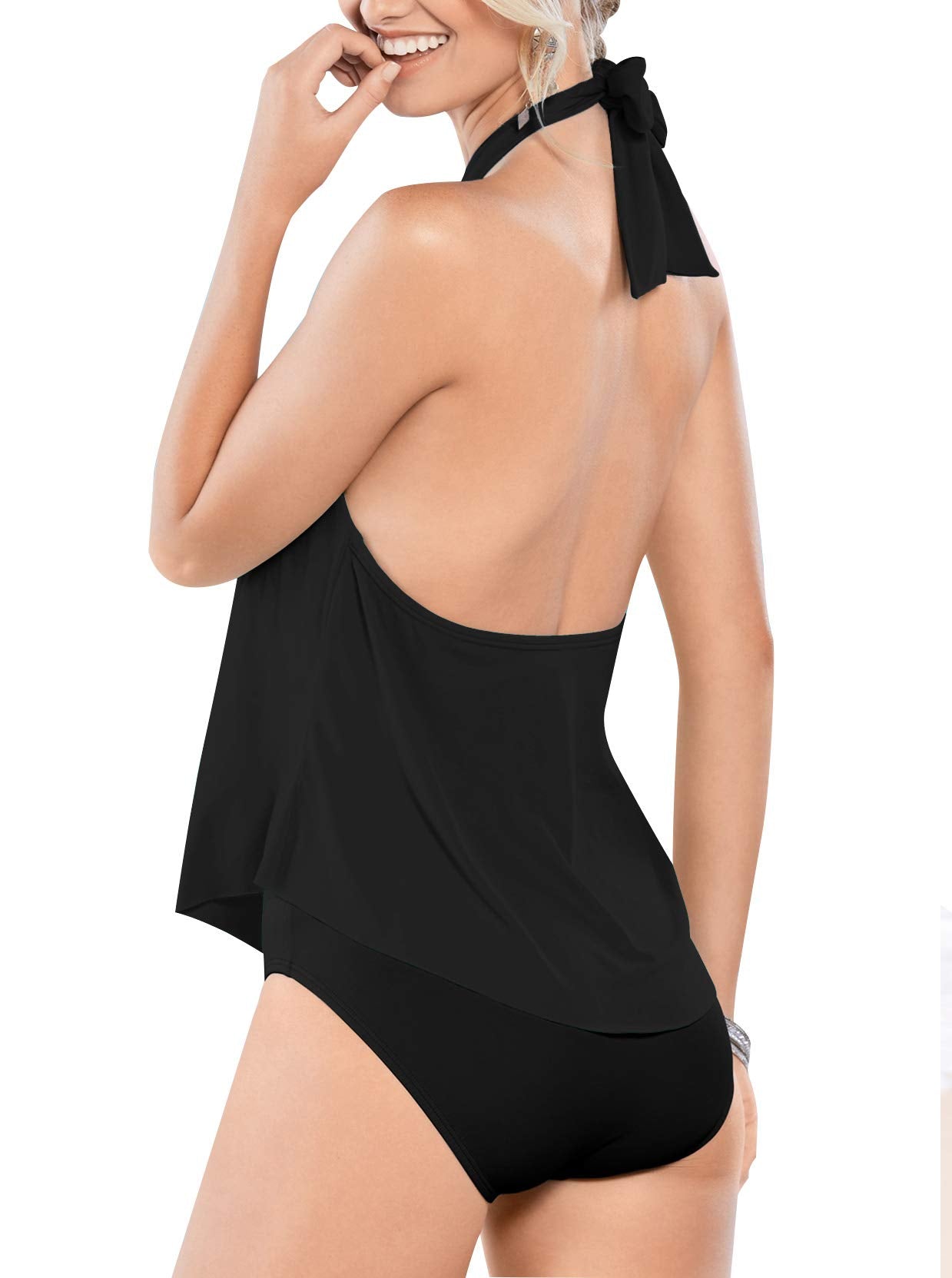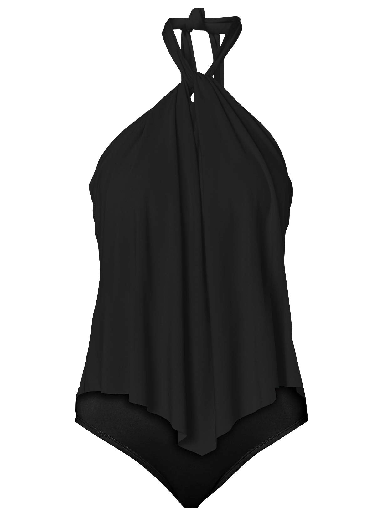 Upopby Women's Sexy High Neck One Piece Swimsuits Halter Flounce Backless Bathing Suits Plus Size Swimwear Monokini Black 10