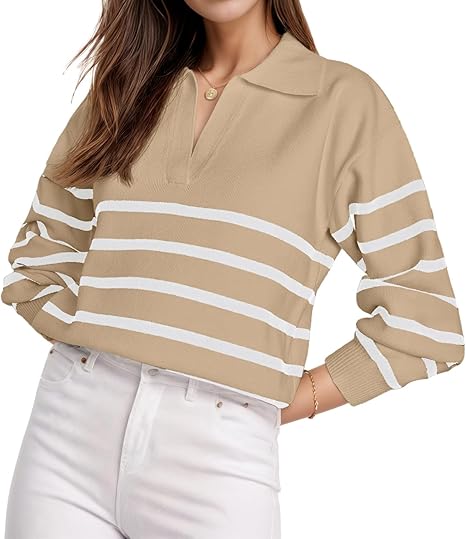 GRECERELLE 2024 Sweaters for Women Trendy Long Sleeve V Neck Striped Sweater Women Winter Chunky Pullover