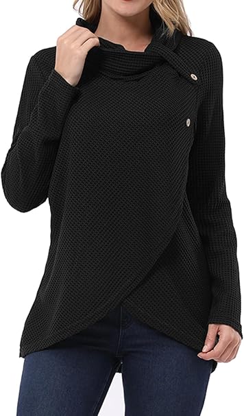 KILIG Womens 2023 Fall Cowl Neck Lightweight Sweaters Long Sleeve Button Tunic Tops Sweatshirts
