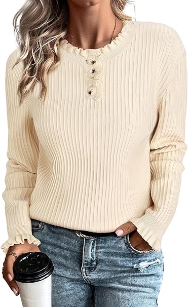 Arach&Cloz Womens Swaters 2024 Fall Fashion Outfits Long Sleeve Crewneck Knit Tops Ruffle Casual T-Shirts Cute Tees Blouses