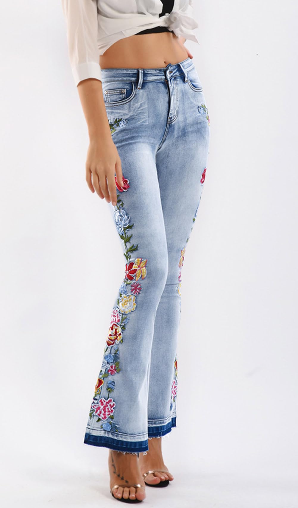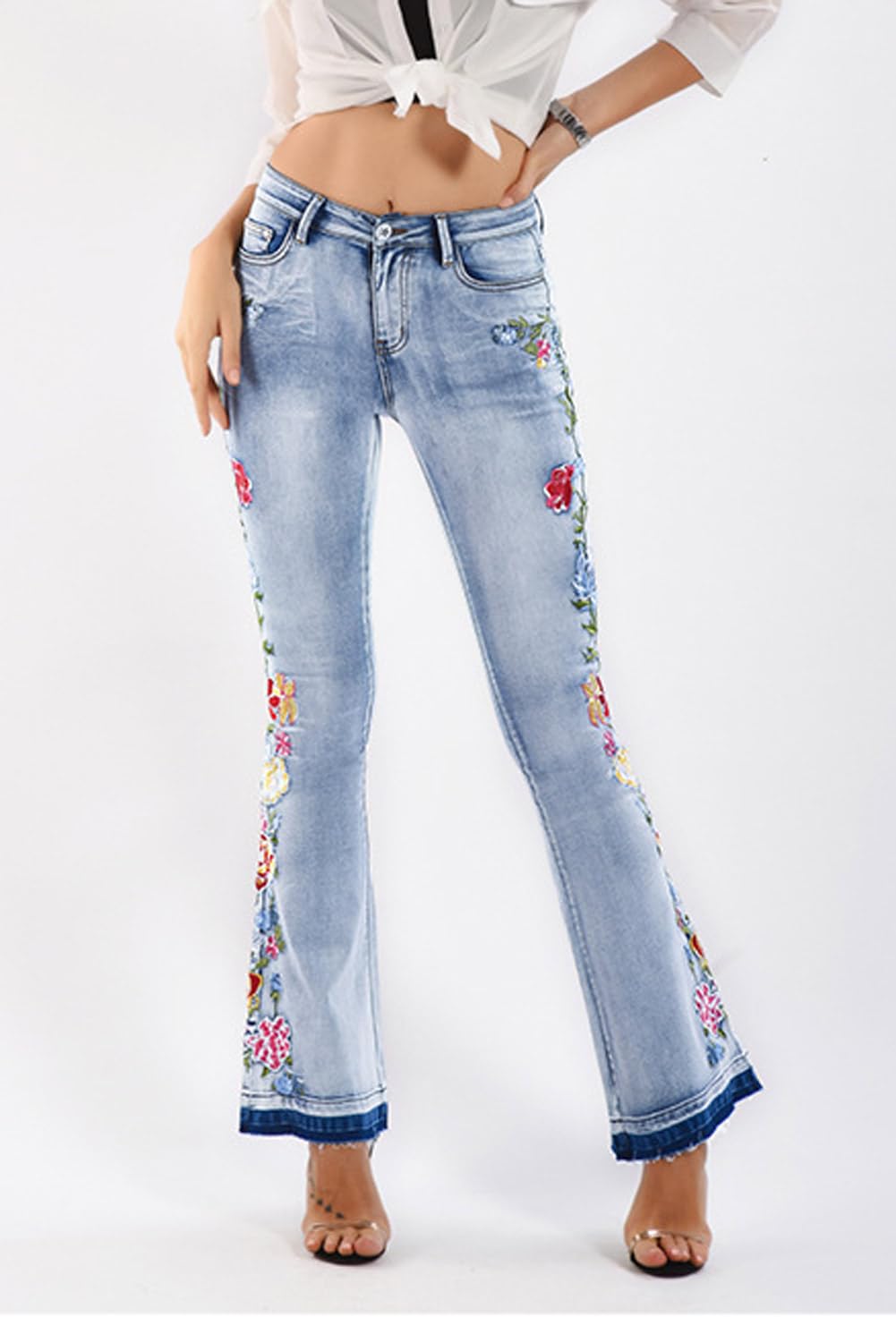 • 【Features】Embroidery Designs are the hottest latest trend in women's fashion industry. They are considered so stylish nowadays. If you are looking for a sexy high waist bell-bottomed jeans broad feet pants that can make your body curves shine bright like a diamond, then this will be your favorite jeans