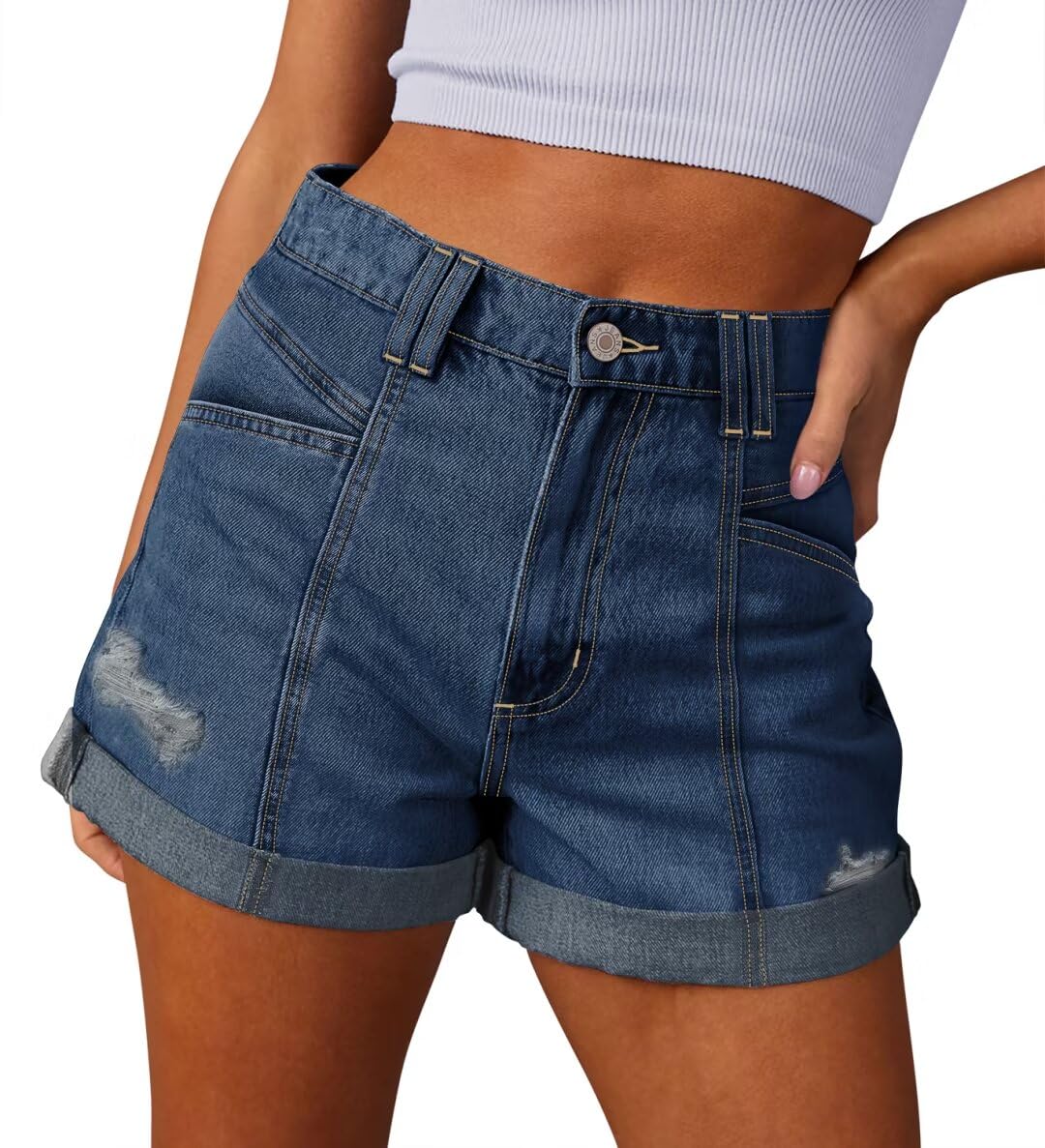 Magritta Distressed Jean Shorts Womens Zipper Fly Denim Shorts with Pockets Navy M