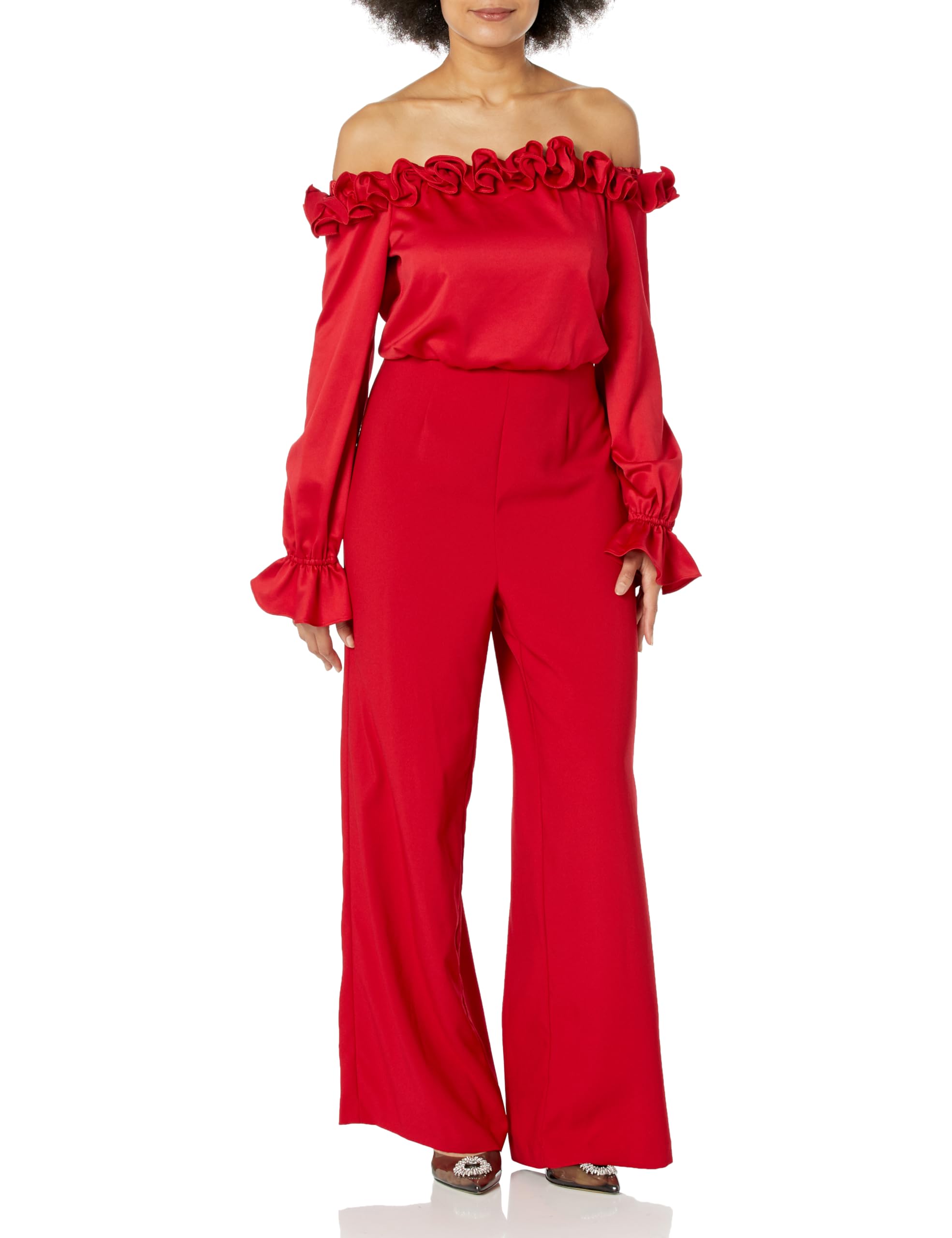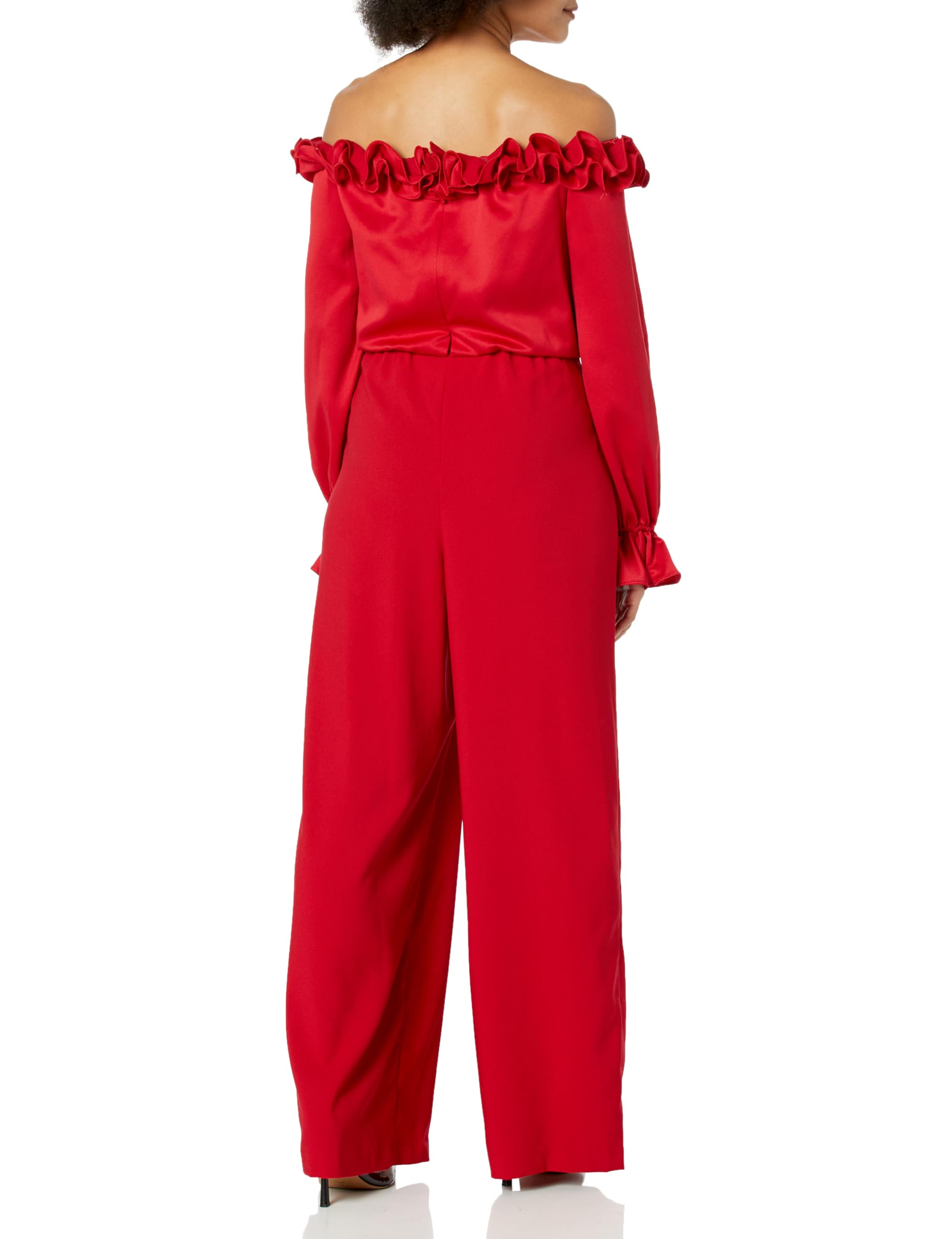 Adrianna Papell Women's Blouson Satin Crepe Jumpsuit, Hot Ruby, 8