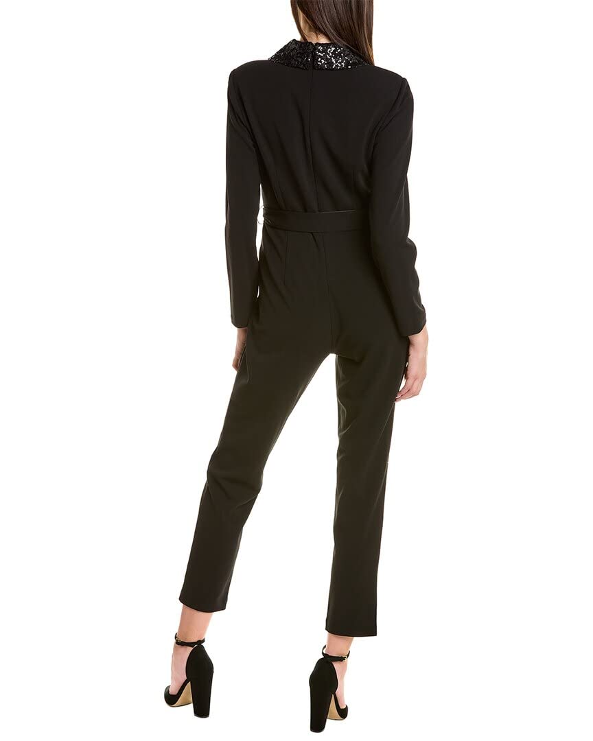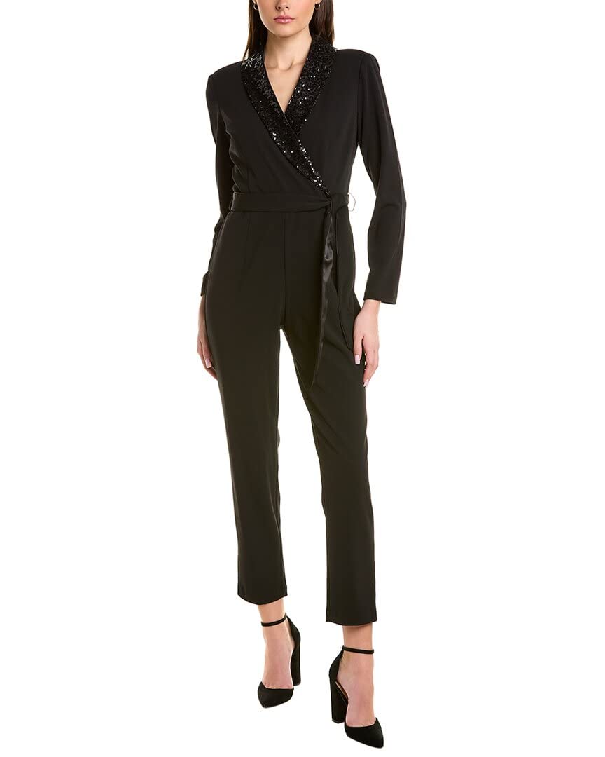 Details: Our best-selling jumpsuit gets updated in a modern menswear-inspired style and is glammed up with a festive twist: a hand-sequined shawl collar. Crafted of a luxe knit crepe with a touch of stretch for a dream fit and feel all day and night. All the details: faux wrap bodice, long sleeves and a slim-leg silhouette. Finished with a waist-defining tie belt. Back hook-and-eye/zip closure. Youll be party ready in an instant in this one, we promise.