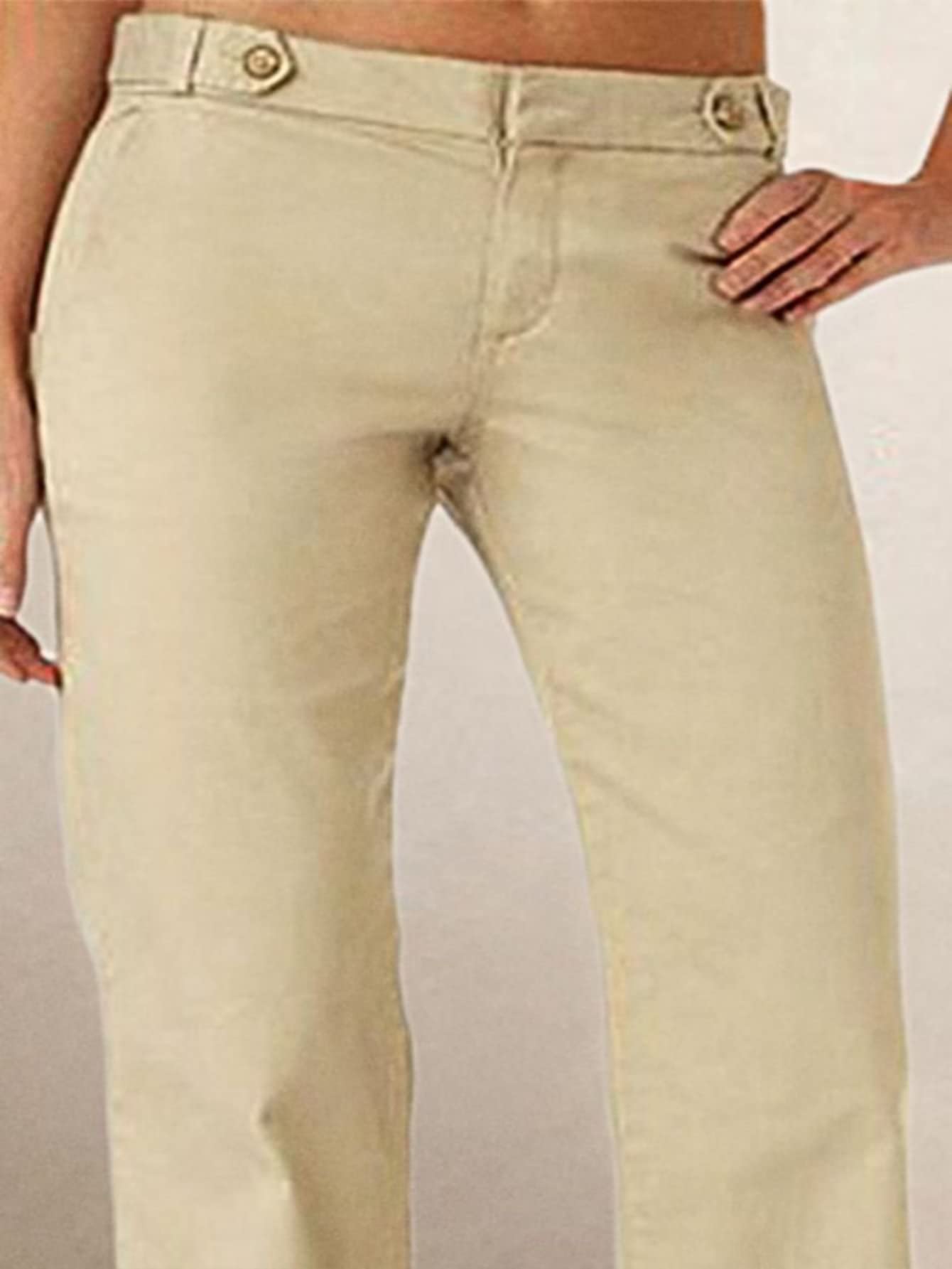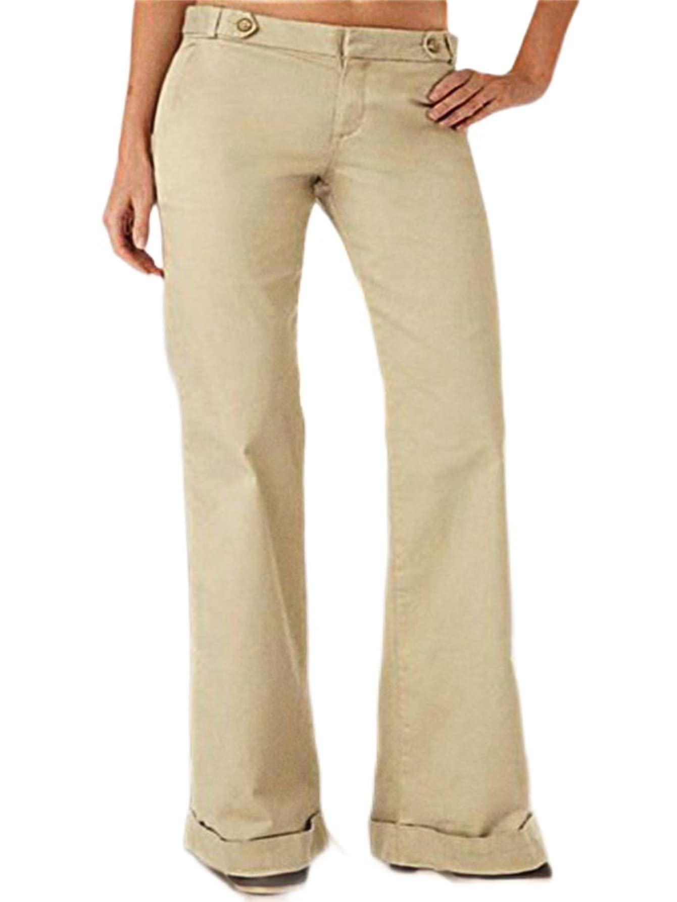 Flamingals Women's Casual Flap Pocket Cargo Pants Button Front Wide Leg Baggy Jeans Khaki S