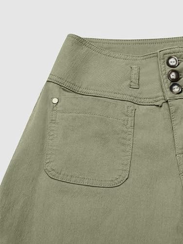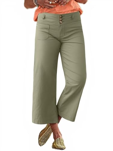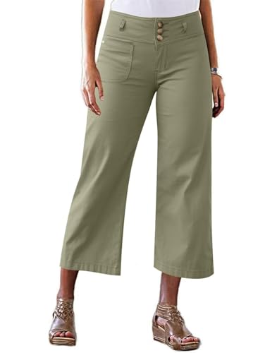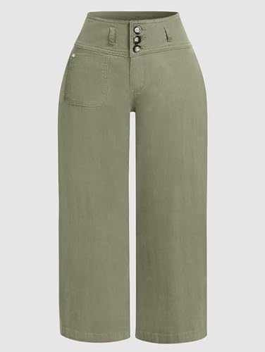 Flamingals Women's Wide Leg Crop Jeans Solid Button Up Low Waist Casual Pants Green 4XL