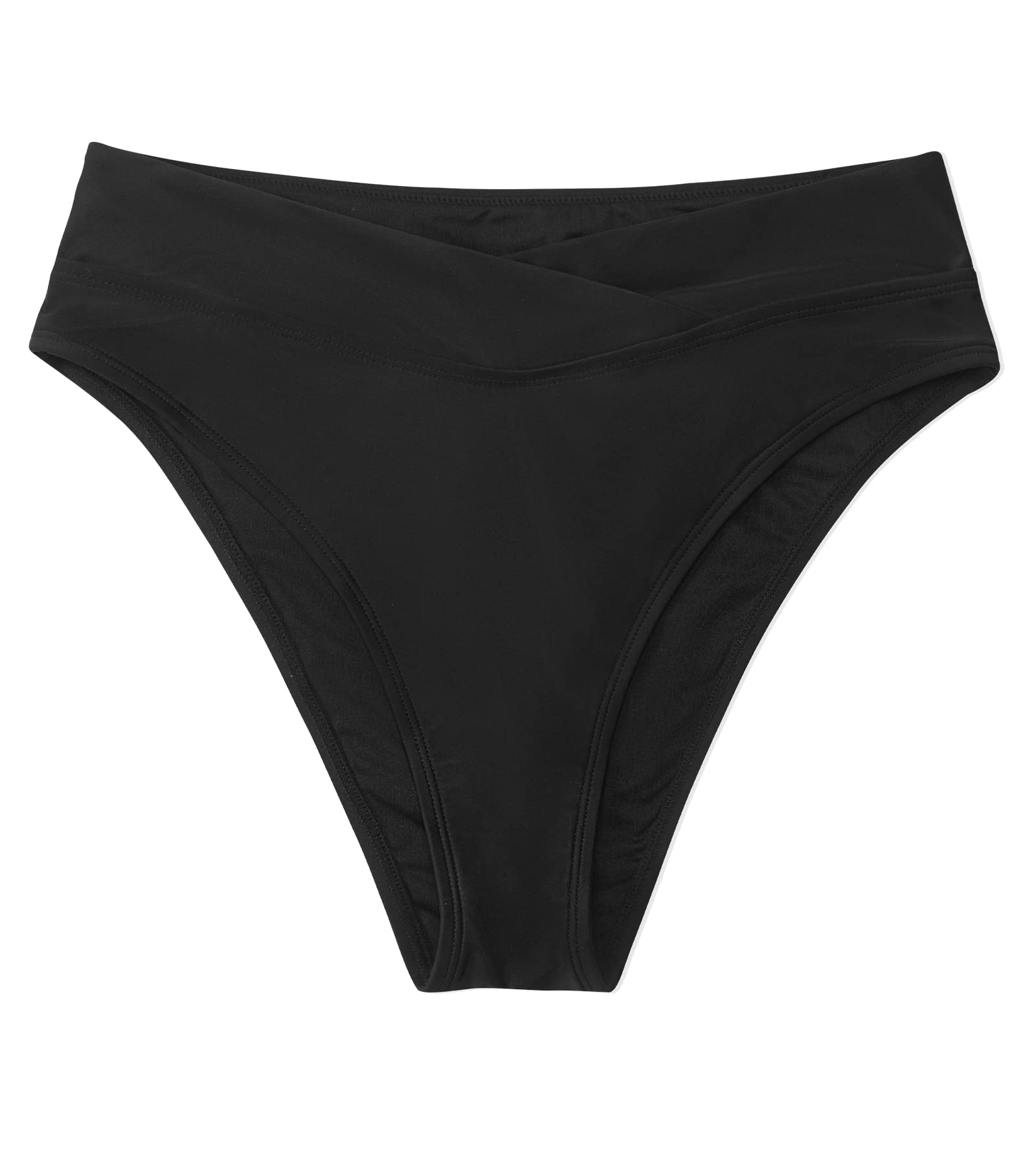 CUPSHE Women's Bikini Swimsuit Black High Waisted High Cut Cheeky V Cut Bikini Bottom L