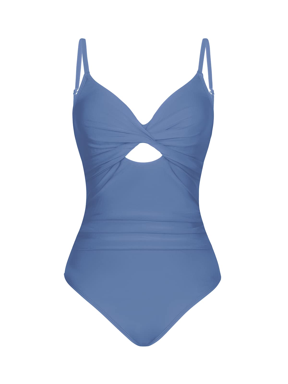 CUPSHE One Piece Swimsuit for Women Bathing Suits Twist Front Cutout Adjustable Straps Ruched Swimwear M,Blue