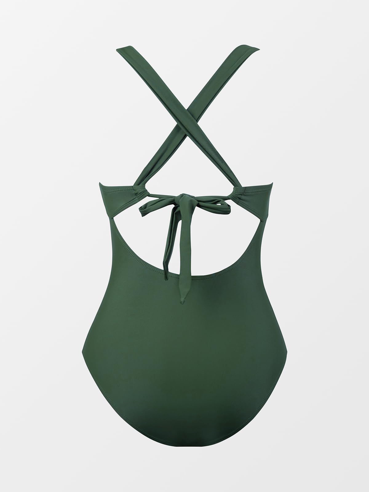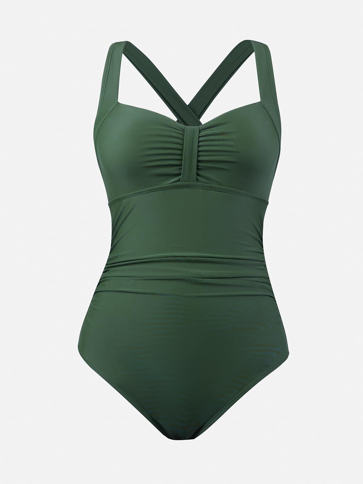 CUPSHE Women's One Piece Swimsuit Ruched Tummy Control Swimwear Cross Back Self-Tie M, Army Green