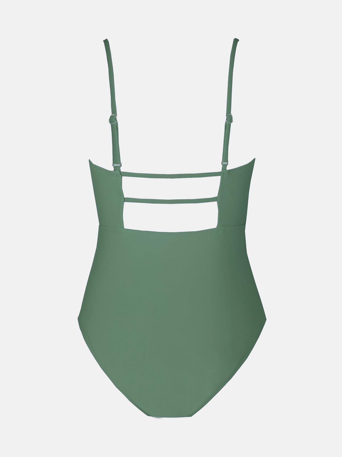 CUPSHE Women's One Piece Swimsuit Square Neck Cutout Back Tummy Control Adjustable Straps Striped Swimwear, M Sage Green