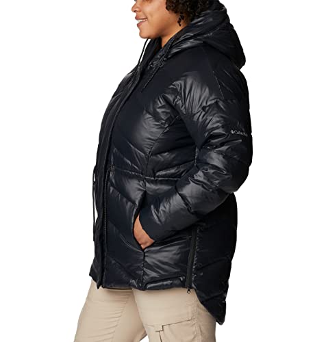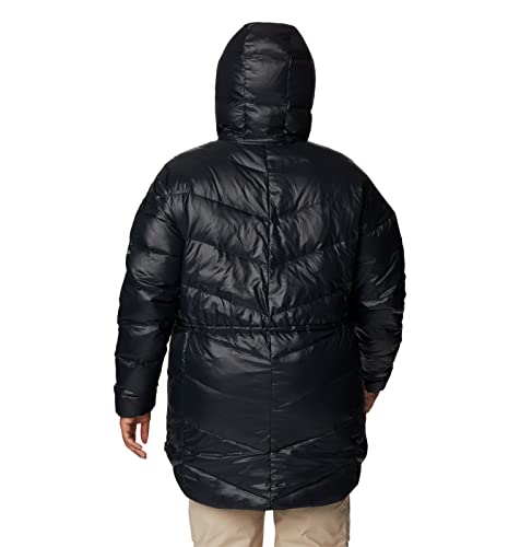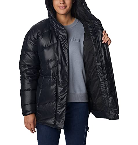 Details: Charge through the cold in style with this printed down jacket, featuring a water-resistant exterior and cozy 450-fill RDS certified (meets Responsible Down Standard) insulation. Dialed-in details include side zips, comfortable elastic cuffs, a drawcord hood and waist, and multifunctional pockets. This jacket’s durable nylon shell delivers top-notch weather protection, while a taffeta interior lining and jersey-lined sleeve cuffs provide next-to-skin comfort. A drop tail hem adds additional coverage you'll appreciate in the cold. Columbia offers this jacket in multiple colors and sizes. Extended sizing available. Regular Fit. To ensure the size you choose is right, utilize our sizing chart and the following measurement instructions: For the sleeves, start at the center back of the neck and measure across the shoulder and down to the sleeve. If you come up with a partial number, round up to the next even number. For the chest, measure at the fullest part of the chest, under the armpits, and over the shoulder blades, keeping the tape measure firm and level.