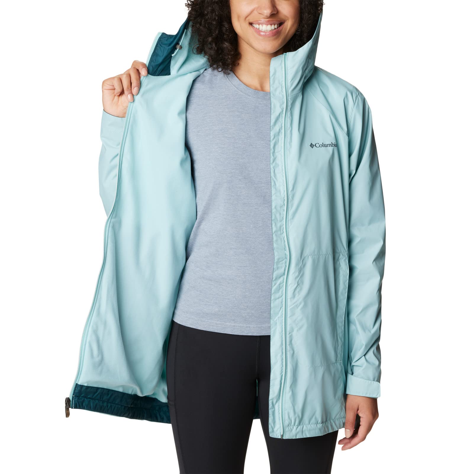 Details: An everyday essential, this waterproof longer form rain jacket packs versatile protection in a variety of stylish color options. With added polyester lining you'll find this is a comfortable and trusty jacket ready for any surprise downpour. Designed with a little extra length for better rain shielding at the waist, and added lining for bit more insulation, you'll find this just as comfortable acting as an everyday windbreaker as torrential ready raincoat. Features adjustable cuffs and hem, full zip front, two hand pockets, and reflective accents to keep you safe and dry. Offered in an assortment of colors and sizes. Extended sizing available. Regular Fit. To ensure the size you choose is right, utilize our sizing chart and the following measurement instructions: For the sleeves, start at the center back of your neck and measure across the shoulder and down to the sleeve. If you come up with a partial number, round up to the next even number. For the chest, measure at the fullest part of the chest, under the armpits and over the shoulder blades, keeping the tape measure firm and level.