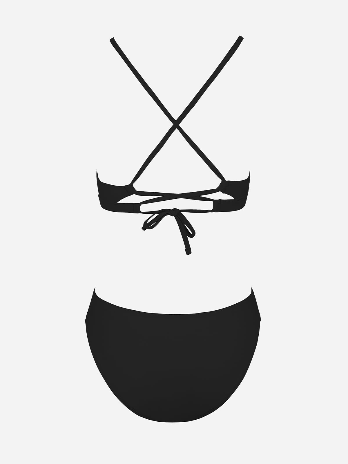 CUPSHE Bikini Set for Women Two Piece Swimsuits V Neck Low Rise Crisscross Back Self Tie Spaghetti Straps,M Black