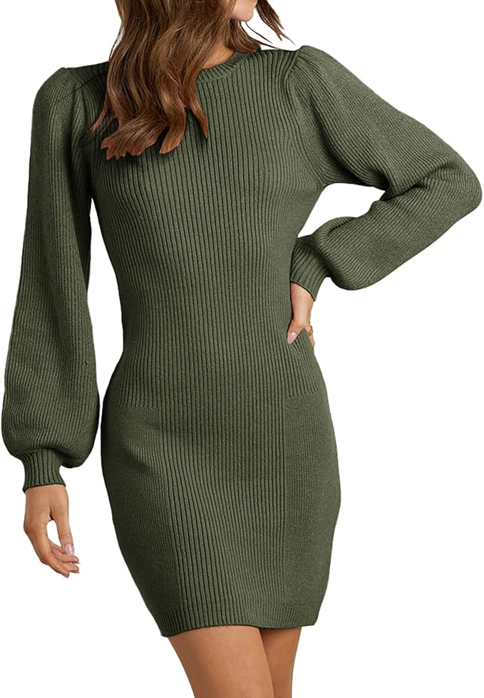 BTFBM Women Casual Long Sleeve Bodycon Short Sweater Dresses Fall 2023 Crew Neck Stretchy Knit Solid Long Pullover Jumper
