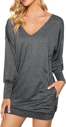 ZANZEA Women's V Neck Long Sleeve Casual Oversized Baggy Tops Loose Blouses Pullover Tunic Sweater Sweartshirt Dress
