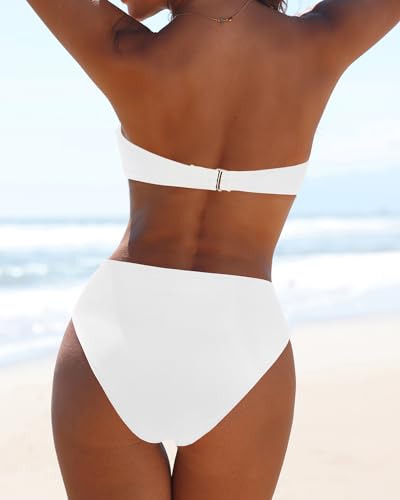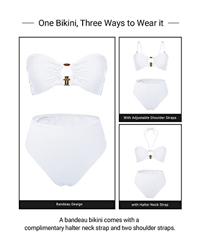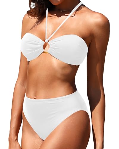 Details: Women's Bandeau Bikini Set High Waisted Bathing Suits O Ring Halter Bikini Tops Two Piece Swimsuit
