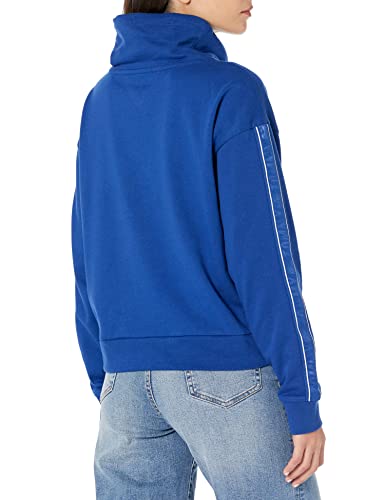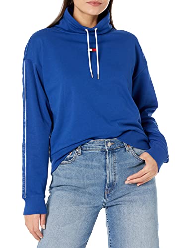 Details: This Tommy Hilfiger Sport womens Sport Pullover is a cowl neck draw cords varsity logo taping down sleeves long sleeve logo flag on chest