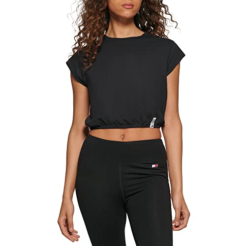 Details: This Tommy Hilfiger Sport womens Sport T-shirt is a cropped cap sleeve cinched at hem basic short sleeve