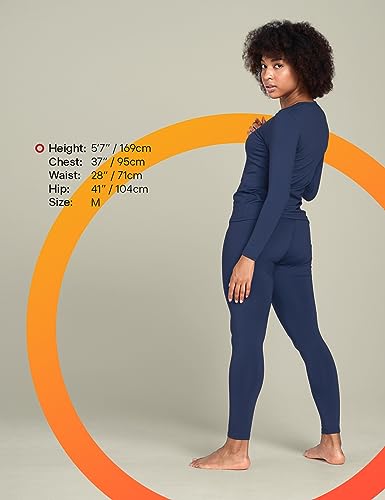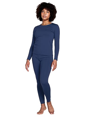 LAPASA Women's Thermal Underwear Set Fleece Lined Long Johns Top Shirt & Bottom Soft Base Layer Thermoflux 200 Warm Midweight Cold Weather L41 Large Navy Blue